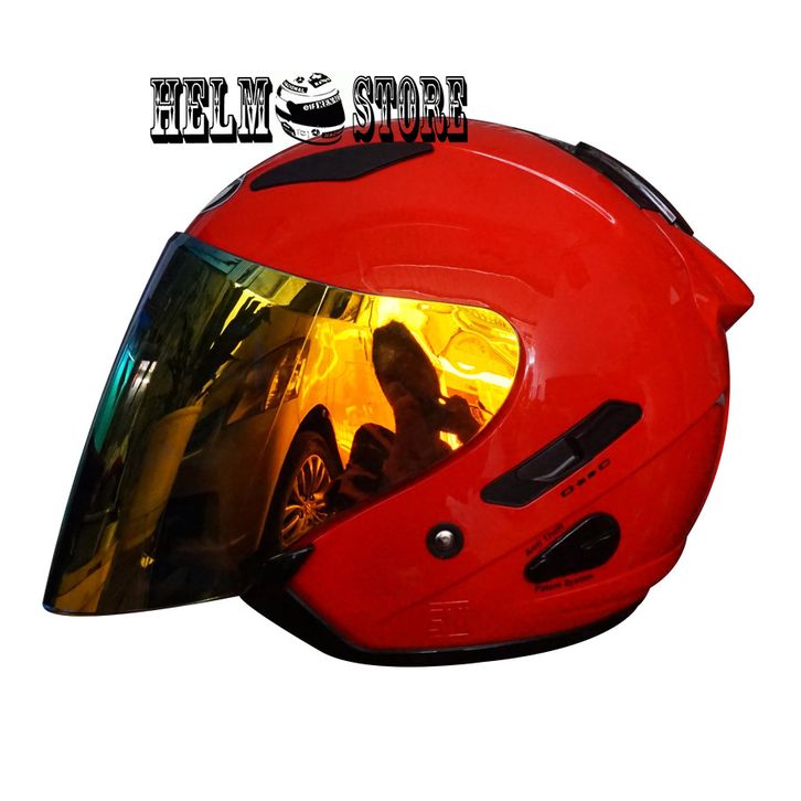 HELM KYT GALAXY FLAT R SOLID FIRE RED KACA VENOM PNP ORIGINAL / KYT GALAXY HALF FACE SNI DOT