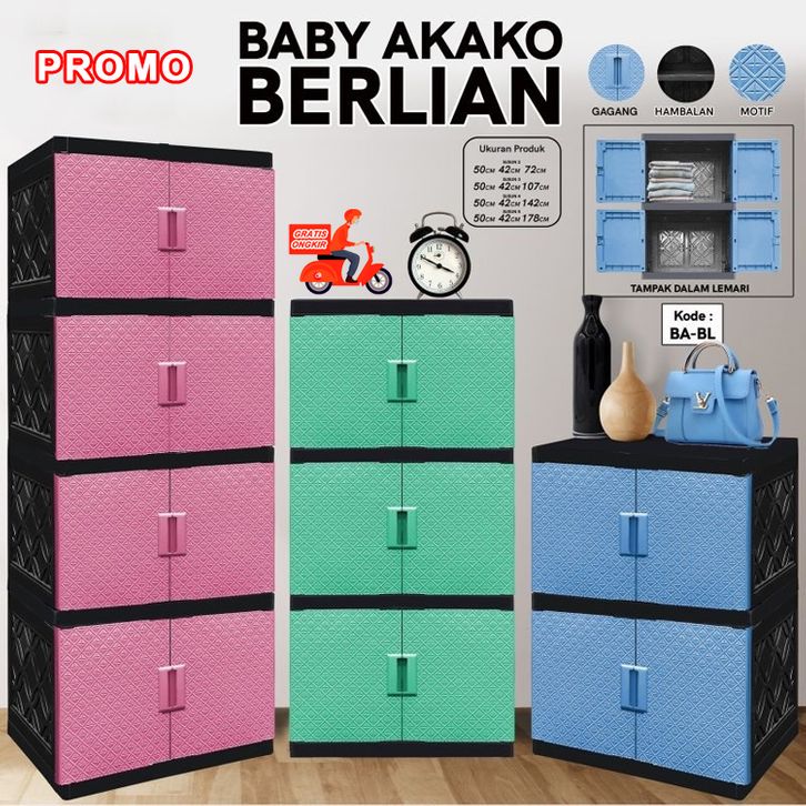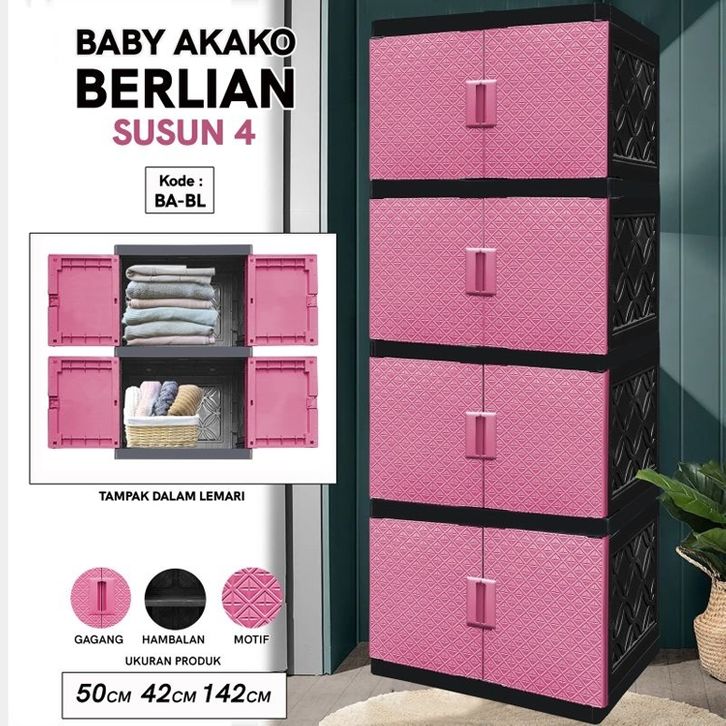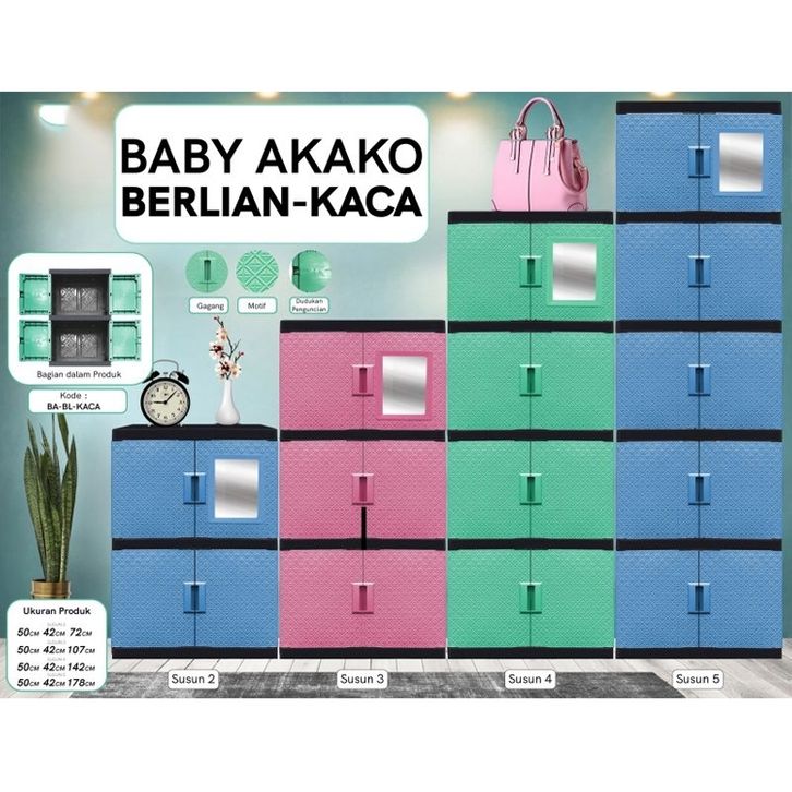 AKAKO Lemari Akako Kaca Bilpin Jumbo Baby Pakaian Plastik Serbaguna 2 PINTU 2, 3, 4, 5 Susun
