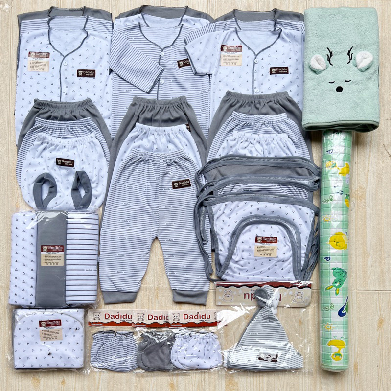 50 PCS BAJU BAYI BARU LAHIR PAKET HEMAT DADIDU GREY ABU MUDA BABY PAKET KOMPLIT BAYI BARU LAHIR