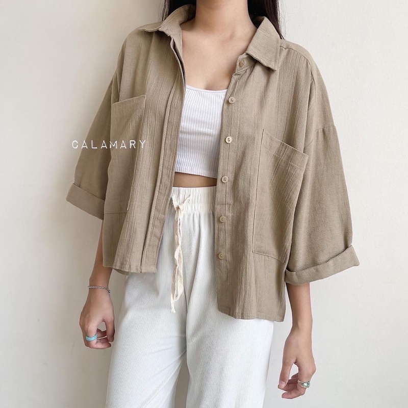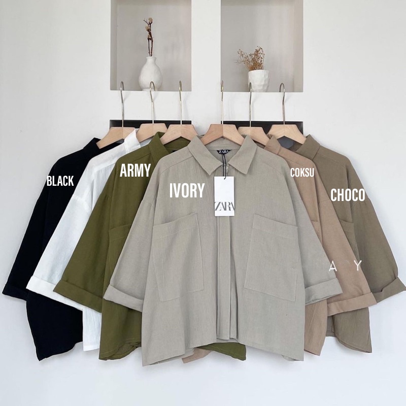 COZIE T0P KEMEJA LINEN FASHION WANITA