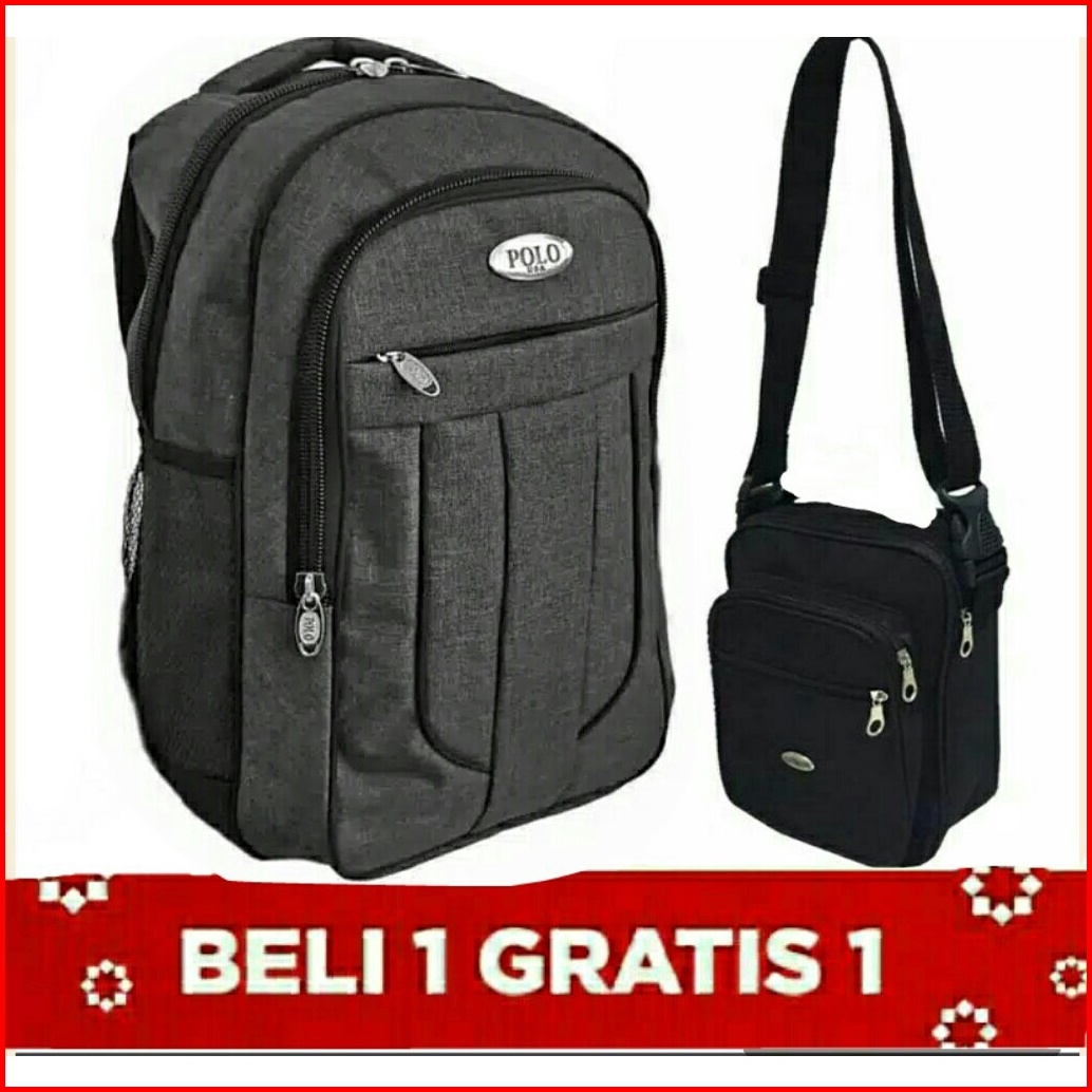 Tas Gendong Pria Polo Global 9608 Coklat Ransel Laptop Cowok Laki Laki Stylish Trendy