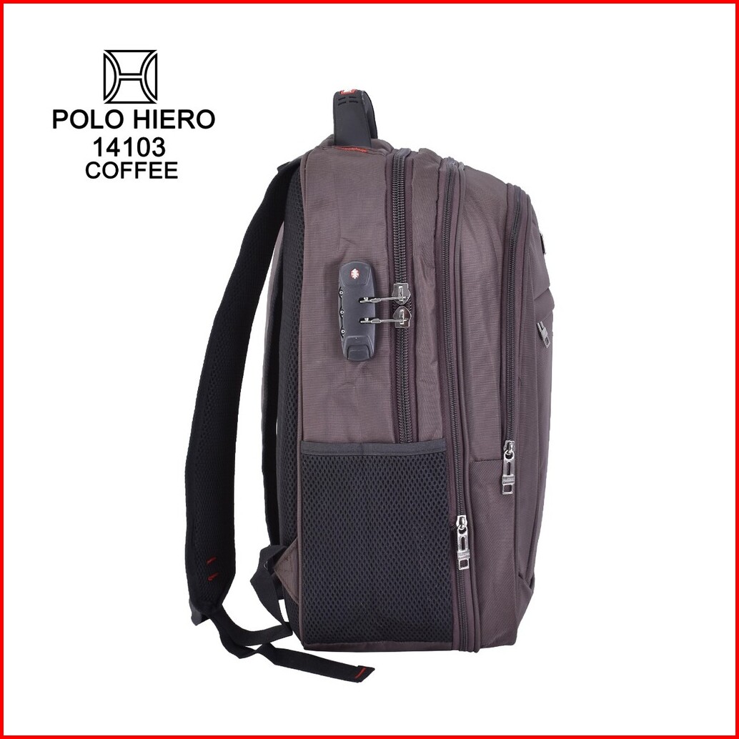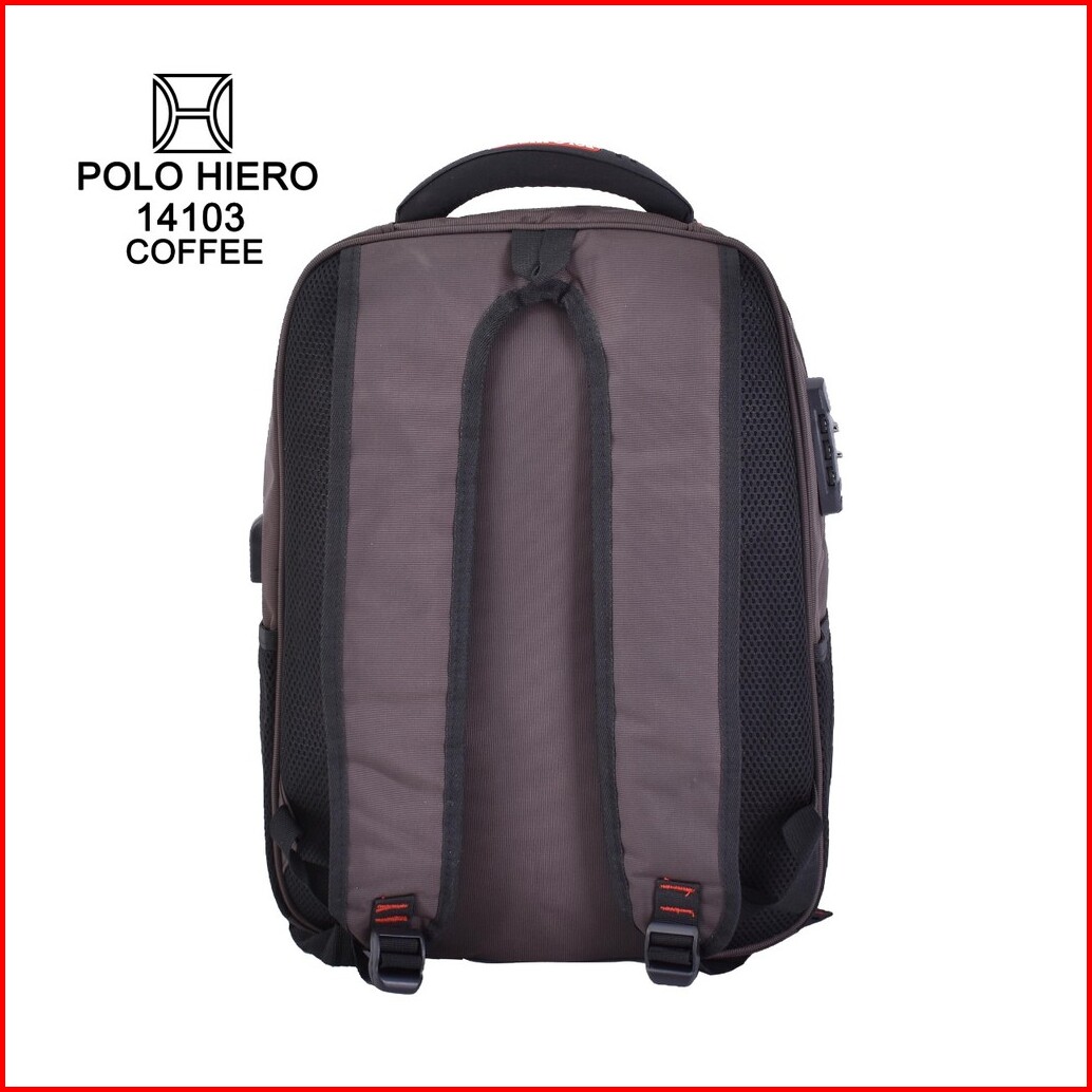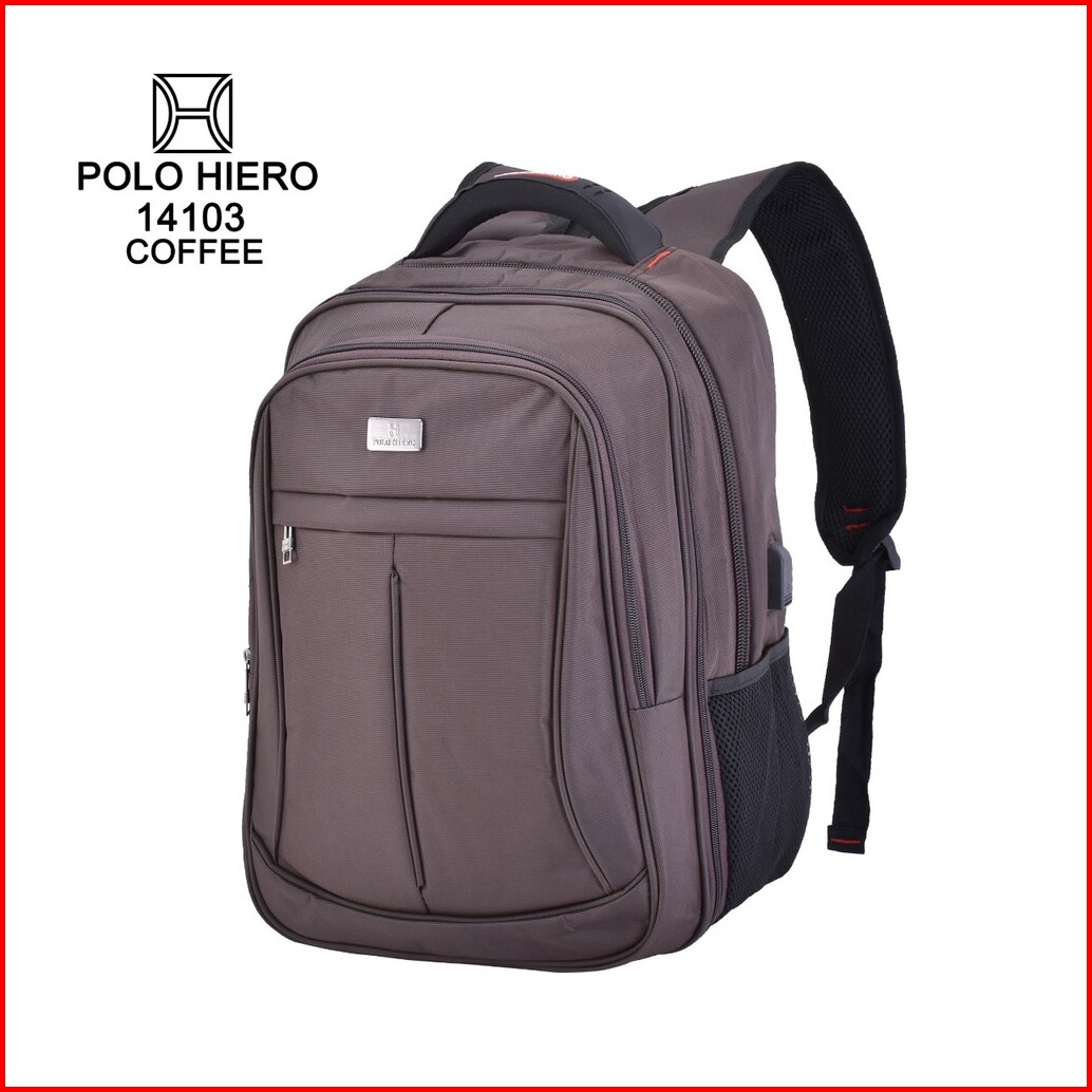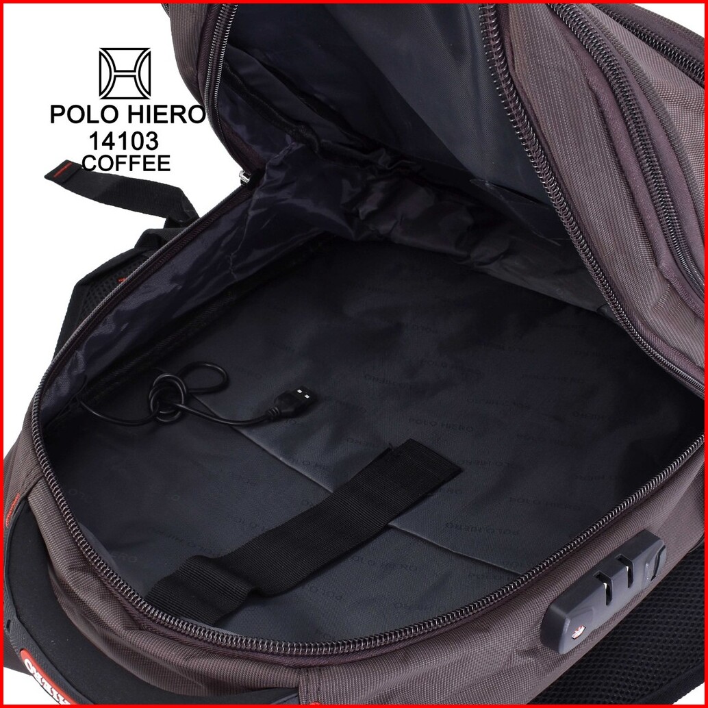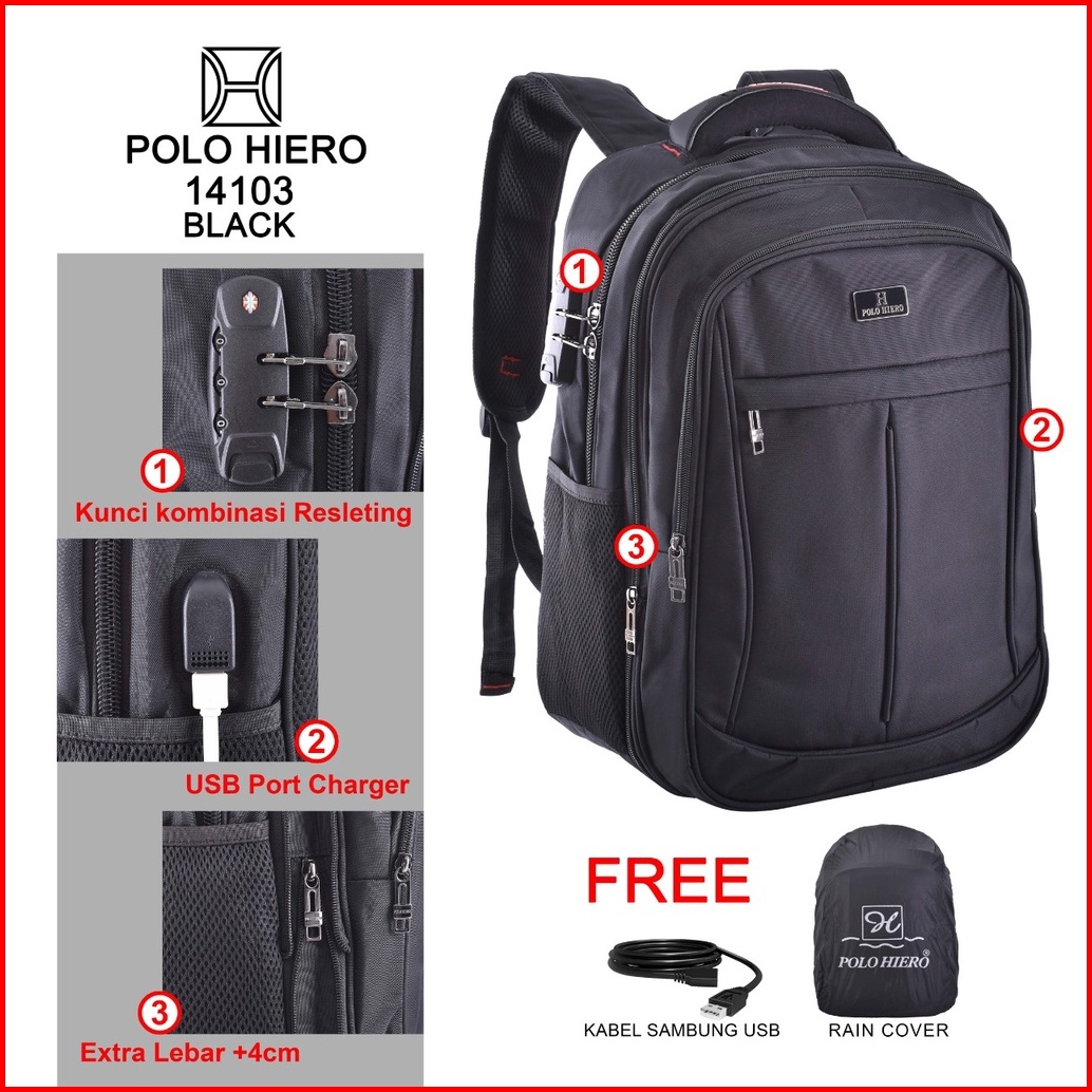 Tas Punggung Laptop Ransel Backpack Style Casual Polo Hiero 14103 Free Kabel Usb Free Rain Cover