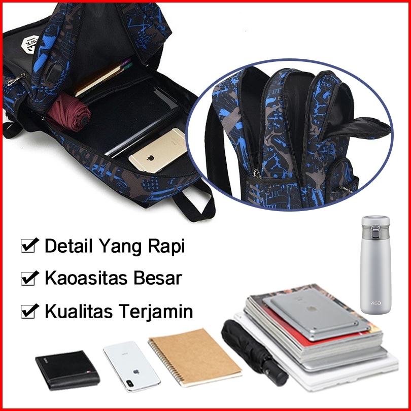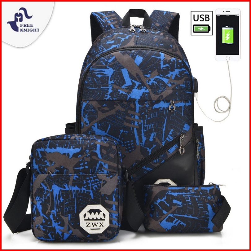 Freeknight Tas Sekolah Anak Ransel 3in1 Pria Backpack Multifungsi Kuliah Laptop Tcr07