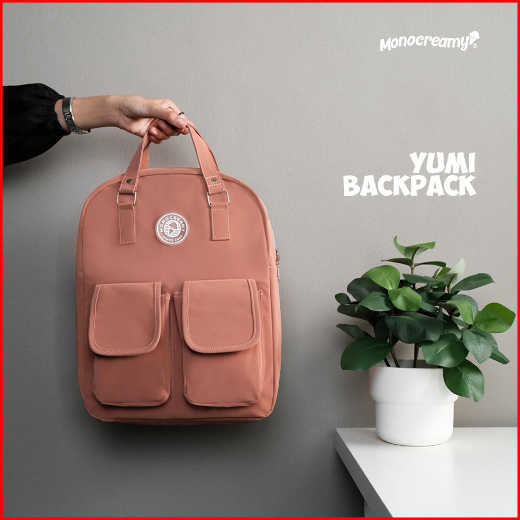 Monocreamy Yumi Tas Ransel Wanita Tas Laptop Tahan Air Tas Sekolah Wanita Tas Ransel Praktis