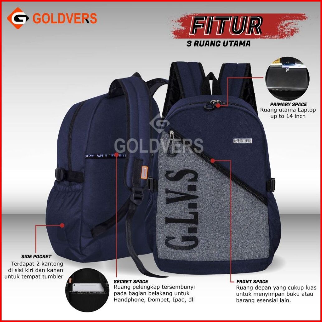 Goldvers - Gaia Tas Ransel Laptop Sekolah Model Polo Kuliah Bahan Serat Nilon Fashion Pria Distro Brand Original