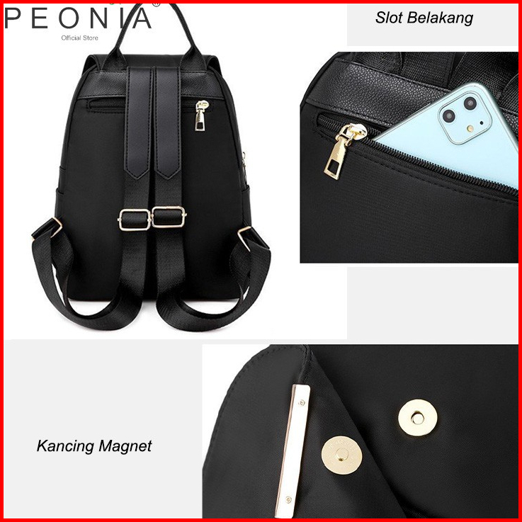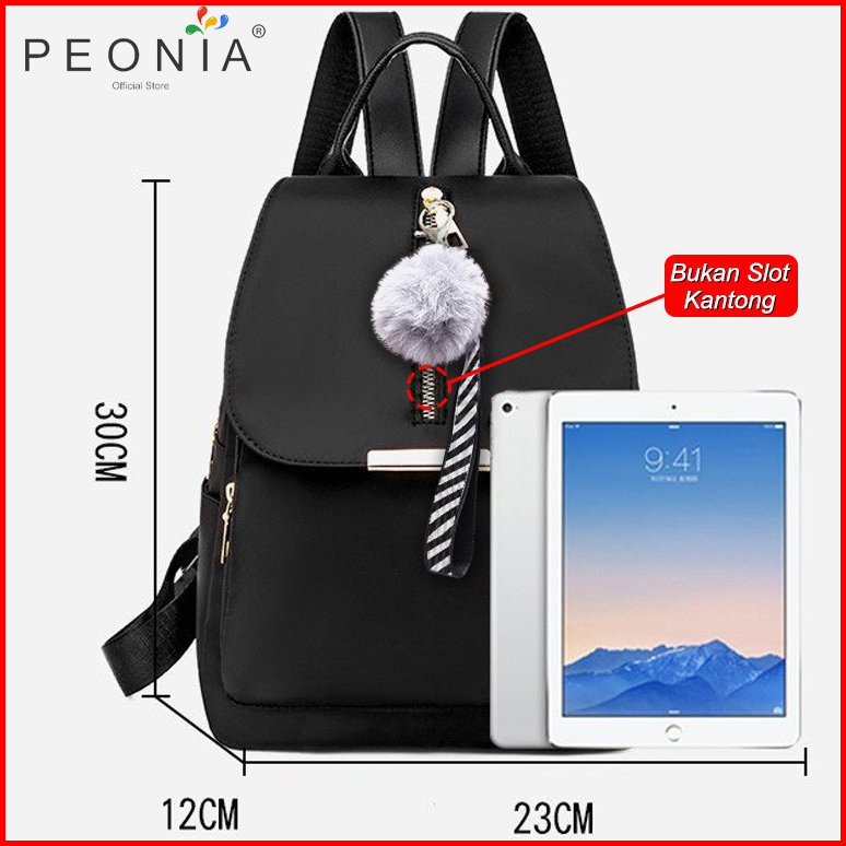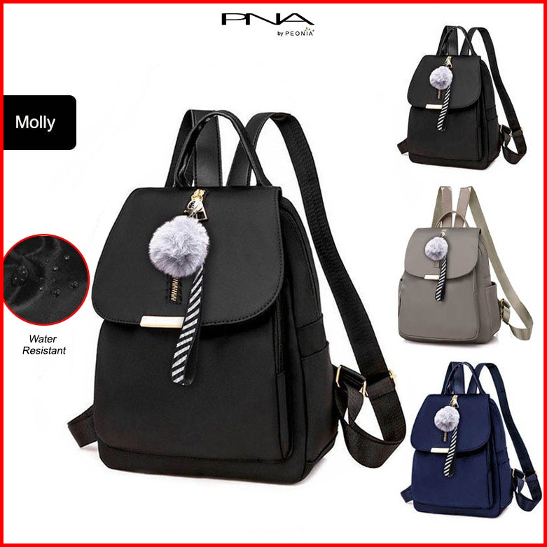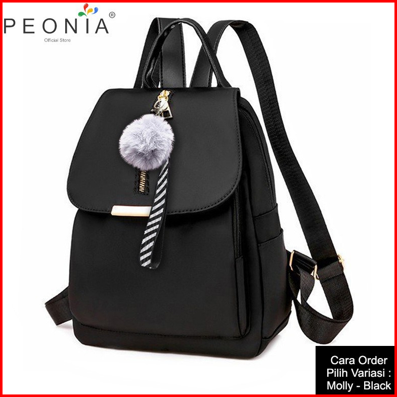 Peonia Pna Molly Pom Water Resistant Tas Ransel Wanita Import Korea Style Punggung Kantor Kerja Sekolah Kuliah Outdoor T
