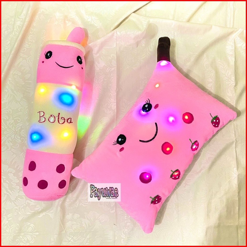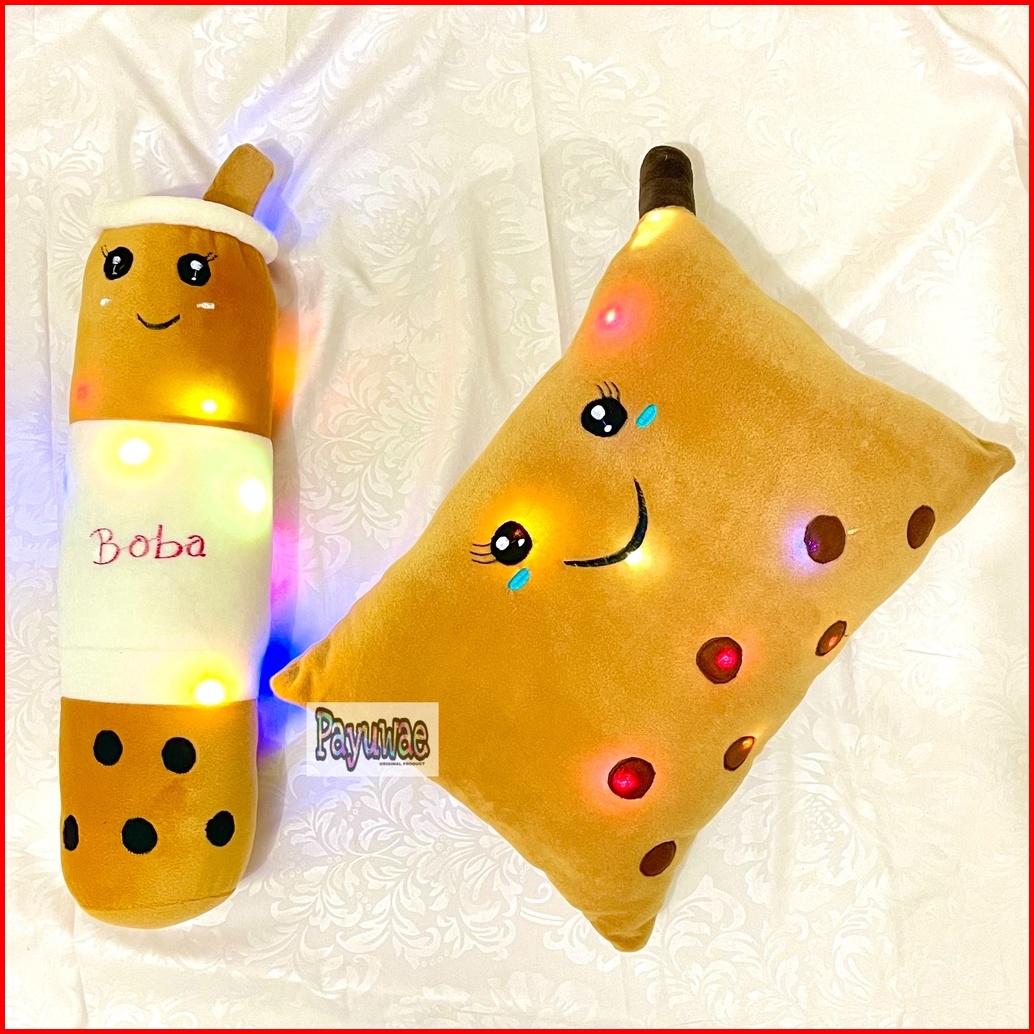 Bantal Guling Boneka 1 Set Karakter Boneka Boba Lampu Led Nyala Bahan Halus Empuk Cocok Untuk Anak Anak