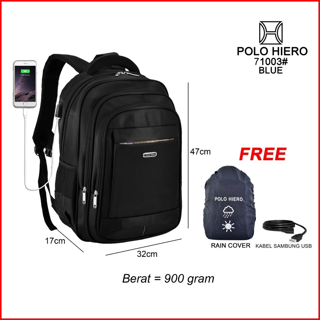 Rf Tas Ransel Pria Polo Hiero 71003 Tas Laptop Sekolah Backpack Free Rain Cover Usb Extension