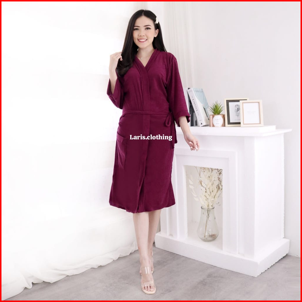 Laris - Kimono Handuk Wanita Size Xl Handuk Kimono Dewasa Polos Dan Bordir Handuk Mandi Wanita
