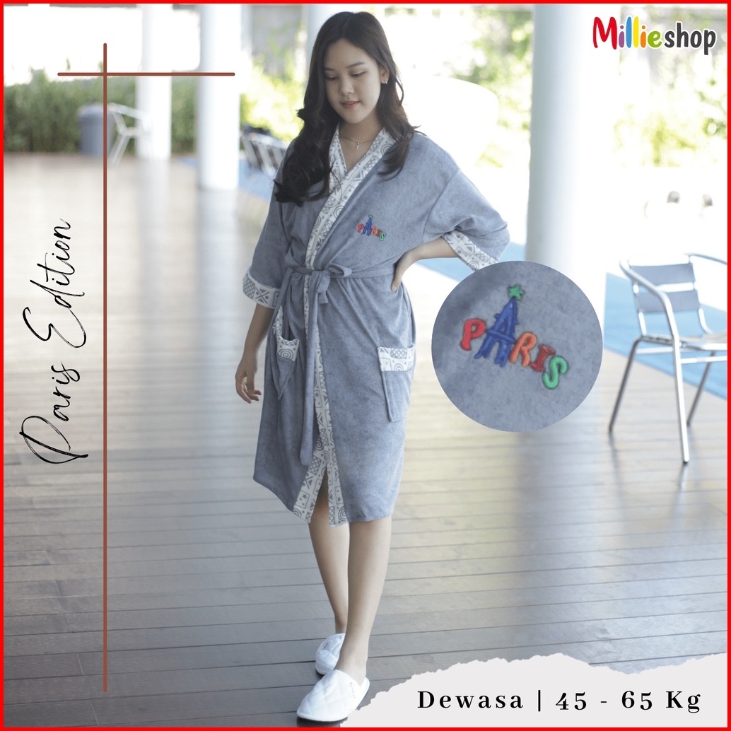Handuk Kimono Dewasa 45 - 65 Kg Motif Paris Jubah Mandi Baju Handuk Millieshop