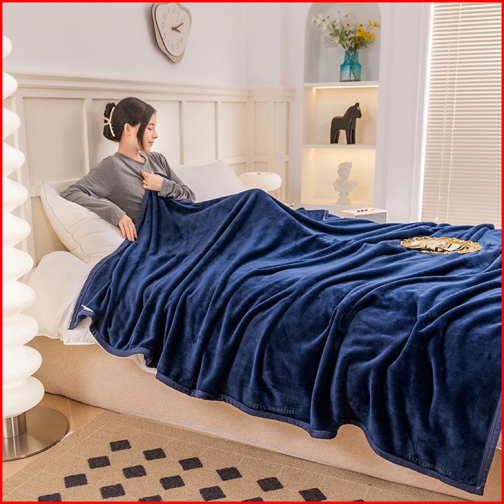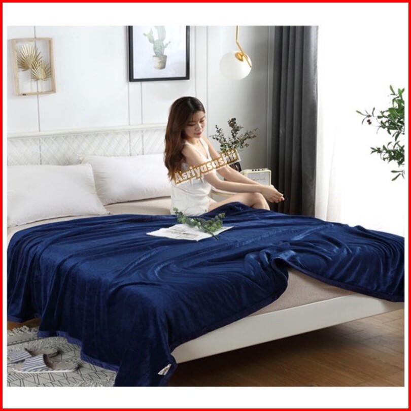 Selimut Dewasa Bulu Halus 150x200 Motif Dewasa Polos Warna Biru Tua Elegan Murah Berkualitas