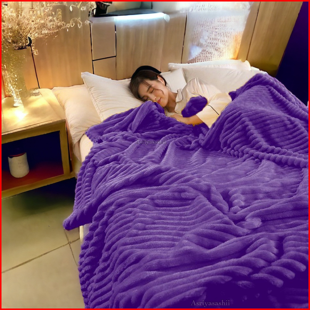 Selimut Dewasa Bulu Halus Ukuran 180x200 Motif Polos Embos Cream Murah Berkualitas