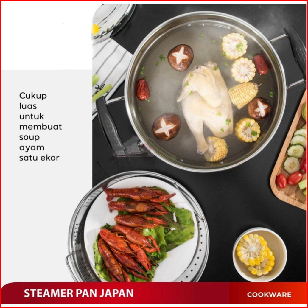 Is - Panci Kukus Steamer Pan Japan Stainless Steel - Panci Panca Guna 22 24 26 28 30cm - Panci Set Steamer Dandang Nasi