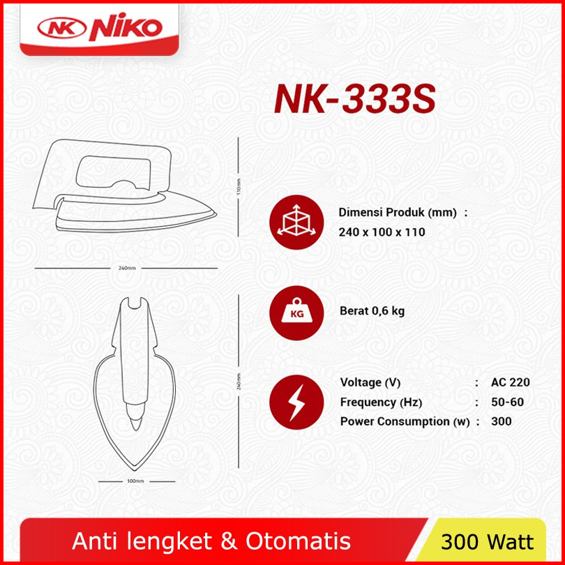 Niko Nk333s Nk999s Setrika Listrik Gosokan Baju Low Watt Otomatis
