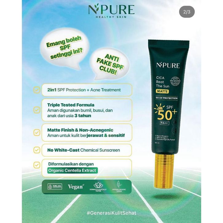 BPOM Npure Cica Beat the Sun Matte SPF 50+ PA++ Sunscreen Sunblock Sunblok Wajah Muka