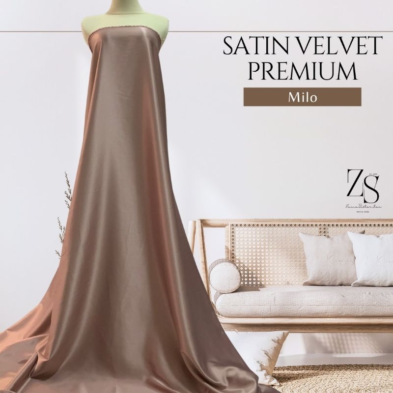 KAIN SATIN VELVET PREMIUM METERAN POLOS WARNA COKELAT MILO