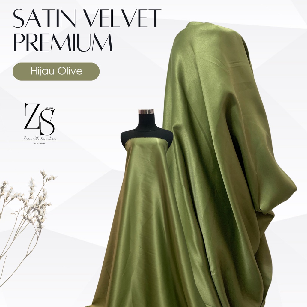 KAIN SATIN VELVET PREMIUM GRADE A METERAN WARNA HIJAU OLIVE