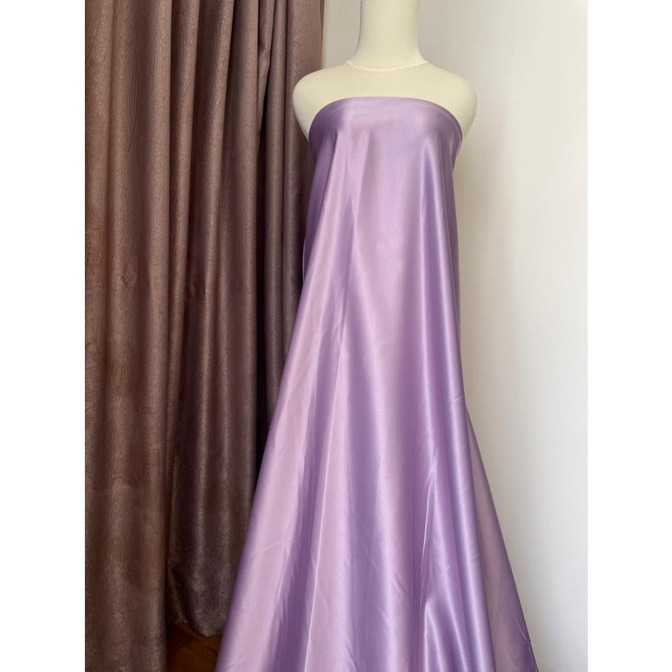 BAHAN KAIN SATIN SATEN BRIDAL PENGANTIN DUCES DUTCHES DEUTCHESS DEUCHESSE METERAN PREMIUM QUALITY WARNA UNGU LILAC