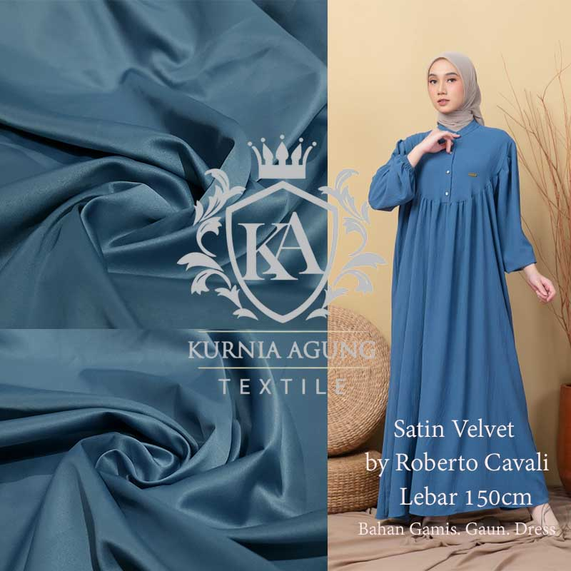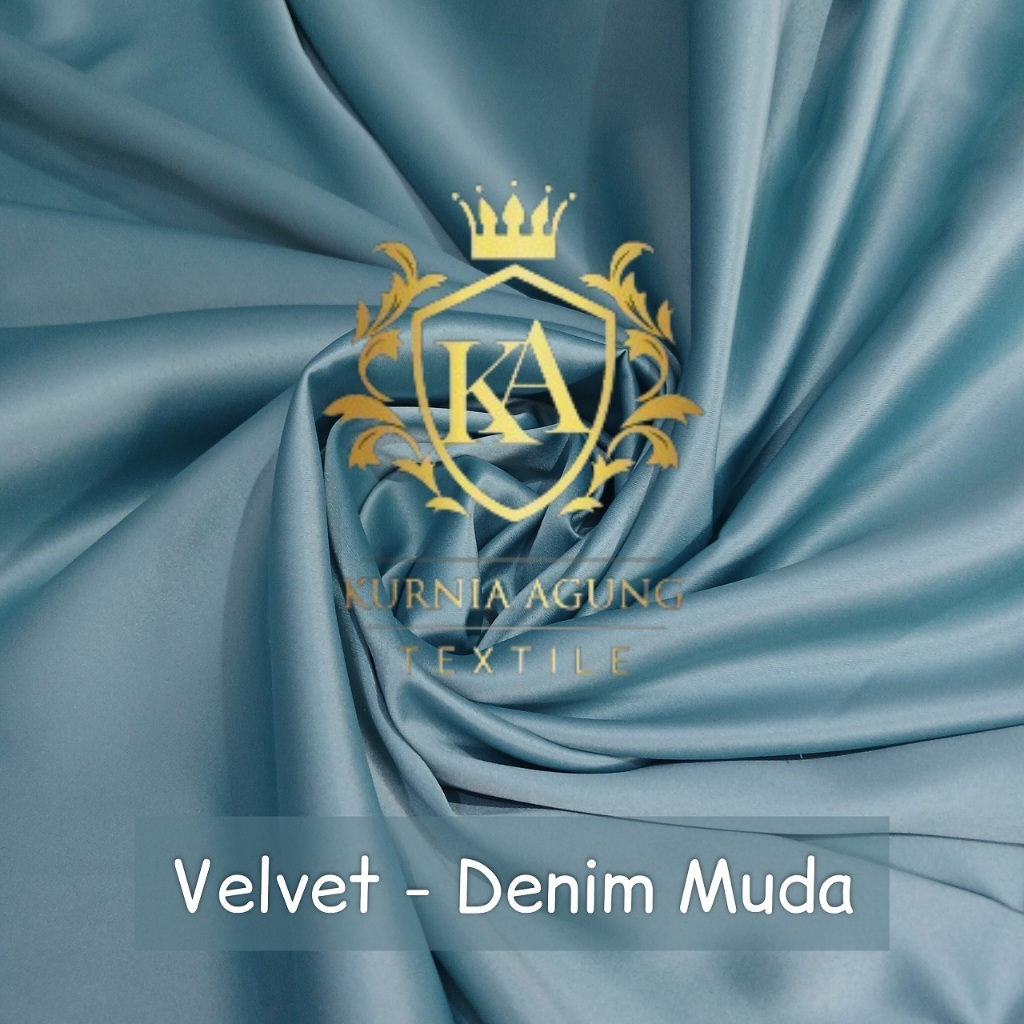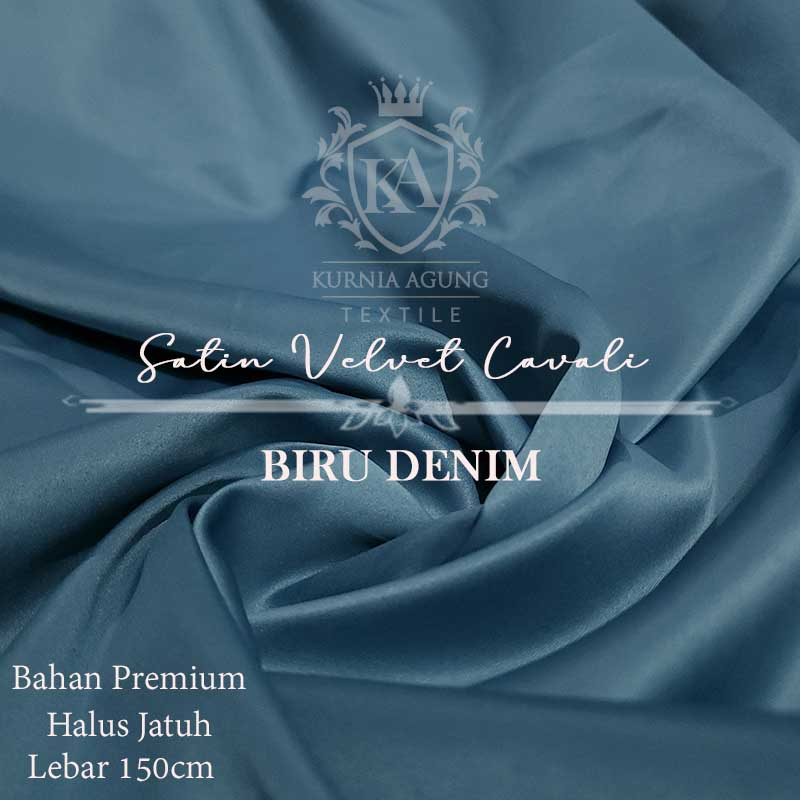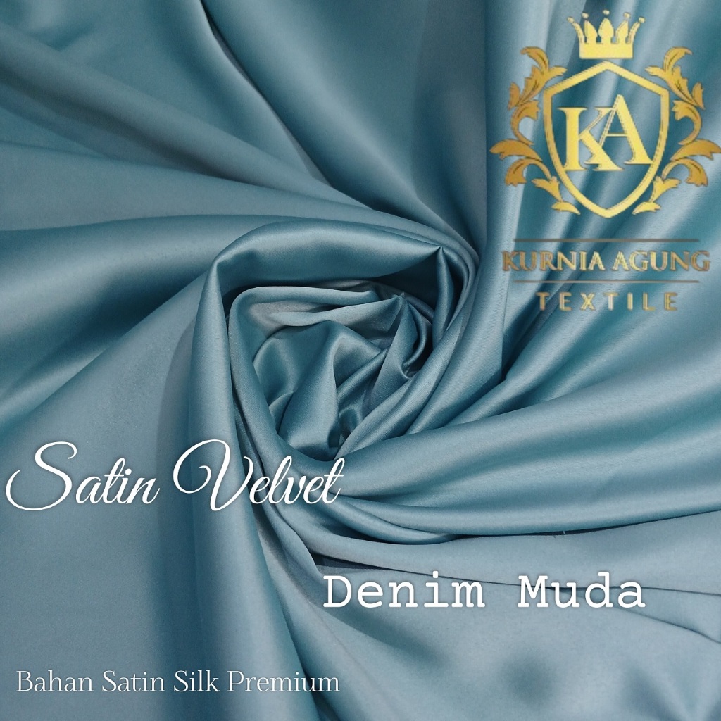 KAIN WARNA DENIM SATIN VELVET SILK BIRU DENIM PREMIUM BACKGROUND POLOS BRIDESMAID DRESS 0.5M DAN METERAN LEBAR 150CM