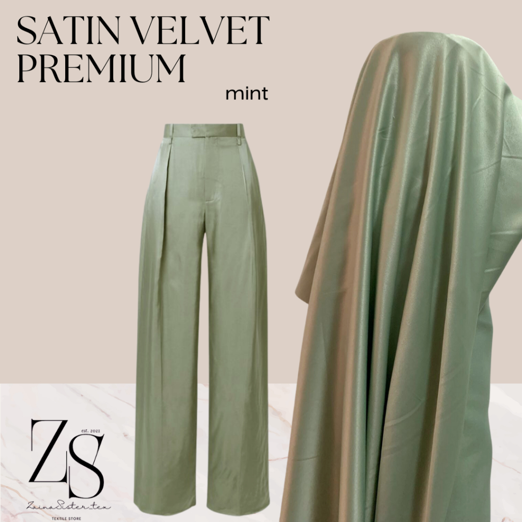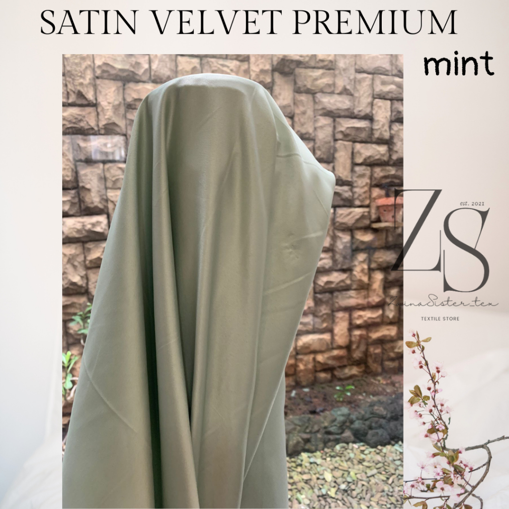 BAHAN KAIN SATIN VELVET PREMIUM GRADE A METERAN WARNA HIJAU MINT
