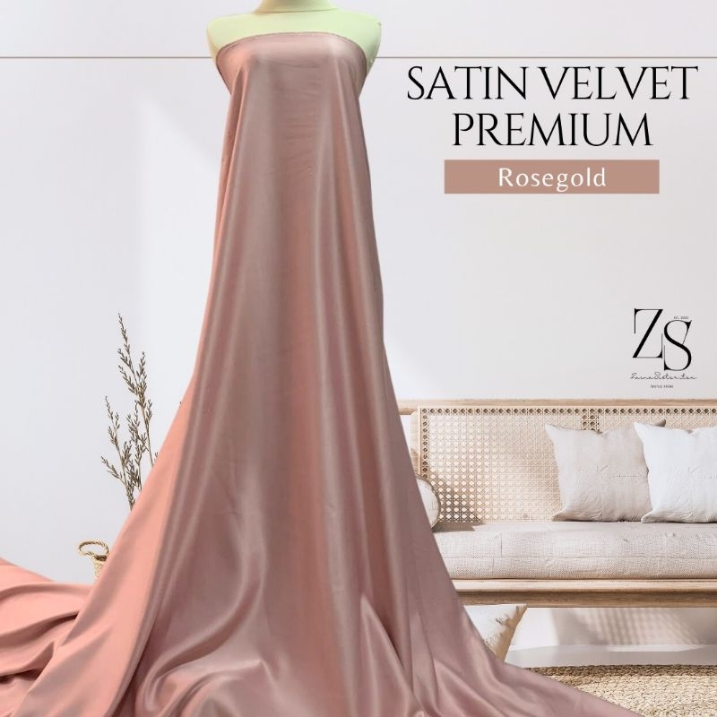 BAHAN KAIN SATIN VELVET PREMIUM BACKGROUND BACKDROP FOTO DRESS METERAN MURAH WARNA PINK ROSEGOLD