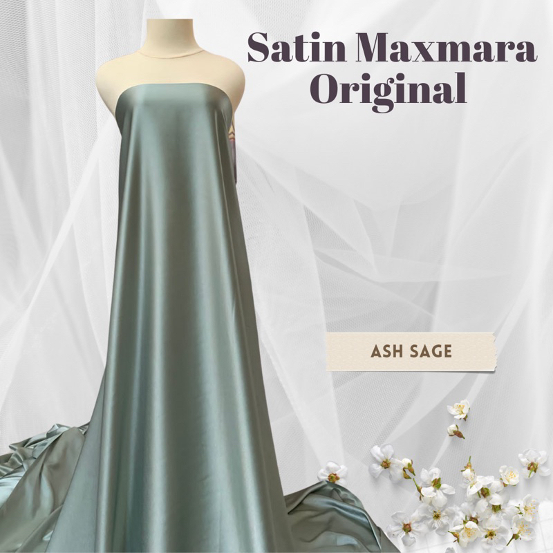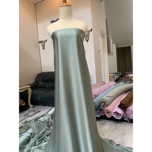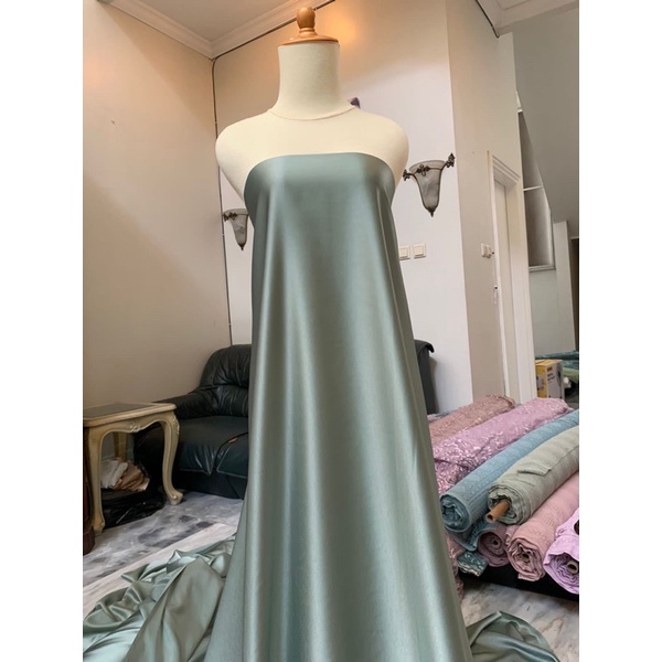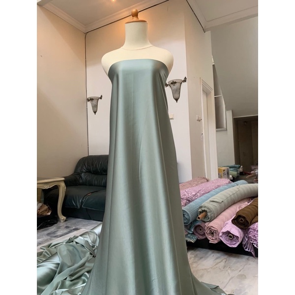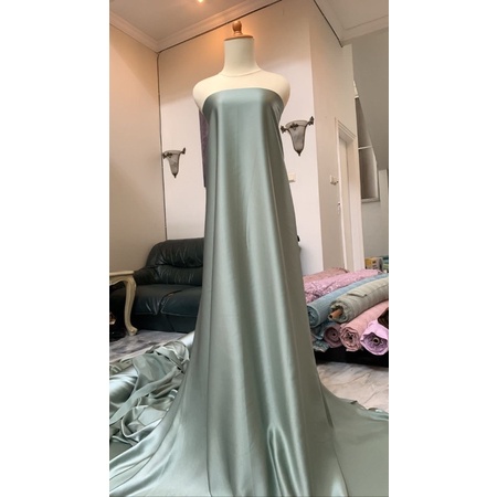 KAIN SATIN SATEN SILK METERAN BAHAN BRIDESMAID MAXMARAA MAKSMARA ORIGINAL 100 PERSEN WARNA ASH GREEN HIJAU SAGE MUDA