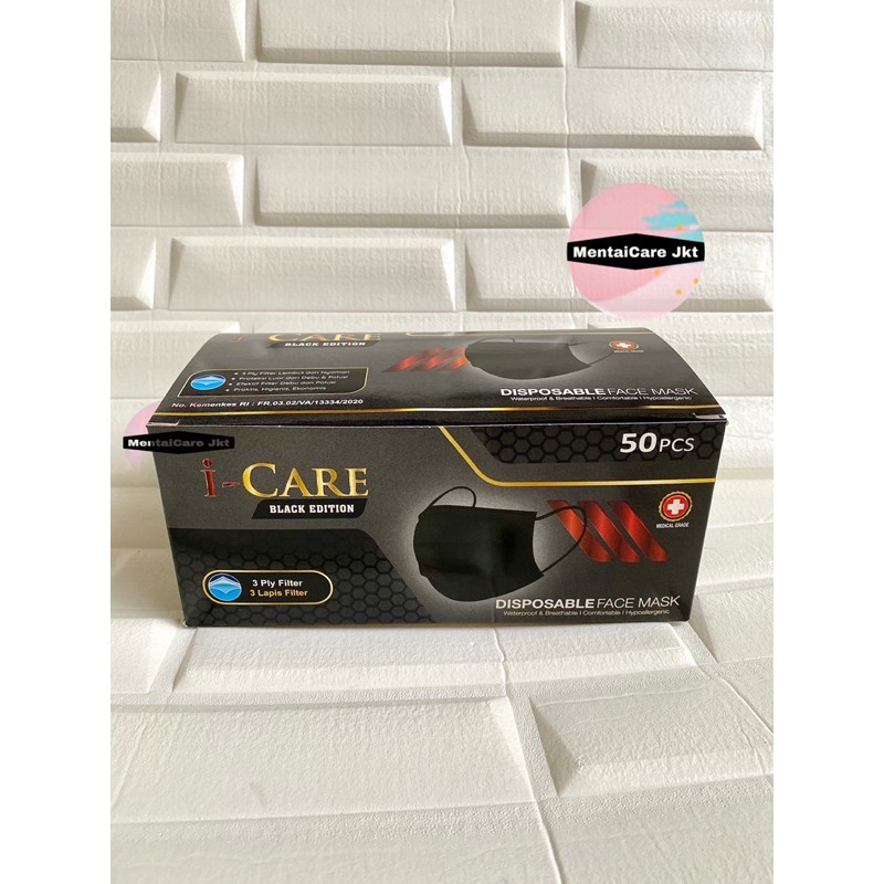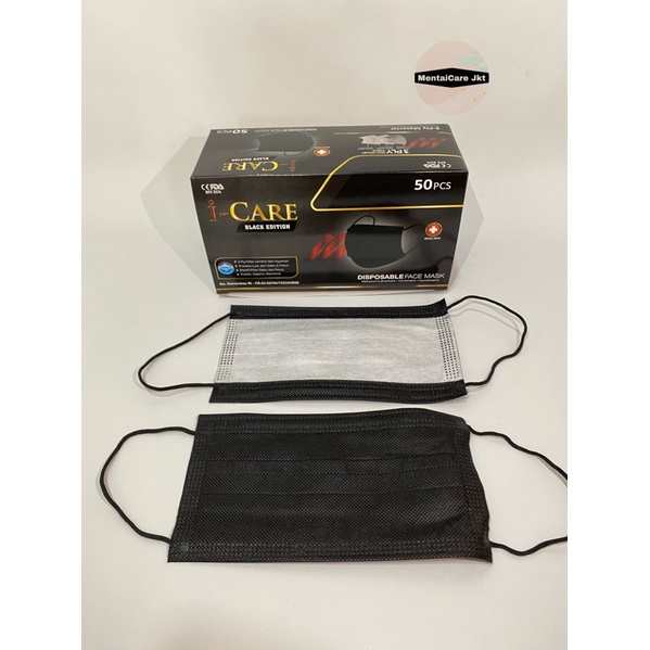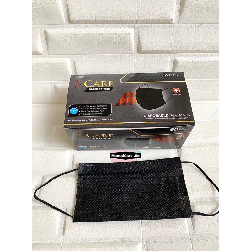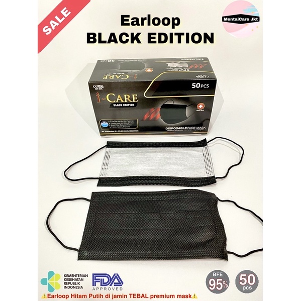 I-CARE BLACK EDITION EARLOOP 3PLY ICARE DISPOSABLE FACE MASK MASKER HITAM BEDAH