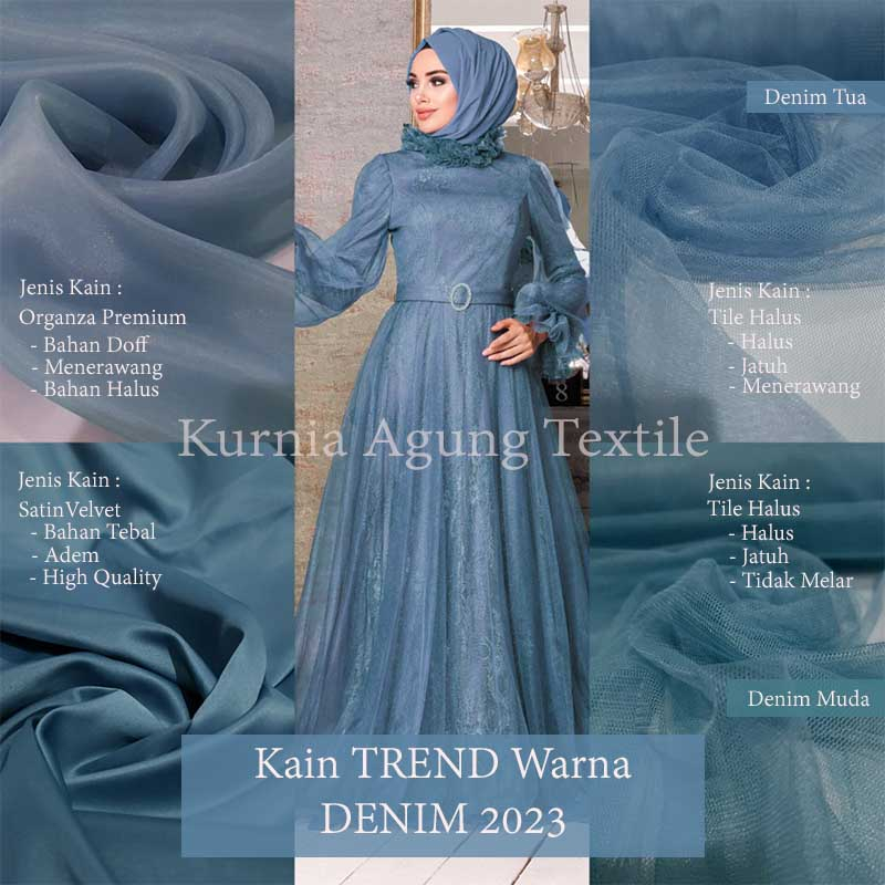 KAIN WARNA DENIM SOFT TILLE SATIN VELVET ORGANZA PREMIUM POLOS BRIDESMAID METERAN DAN 0.5 METERAN BAHAN GAUN DRESS