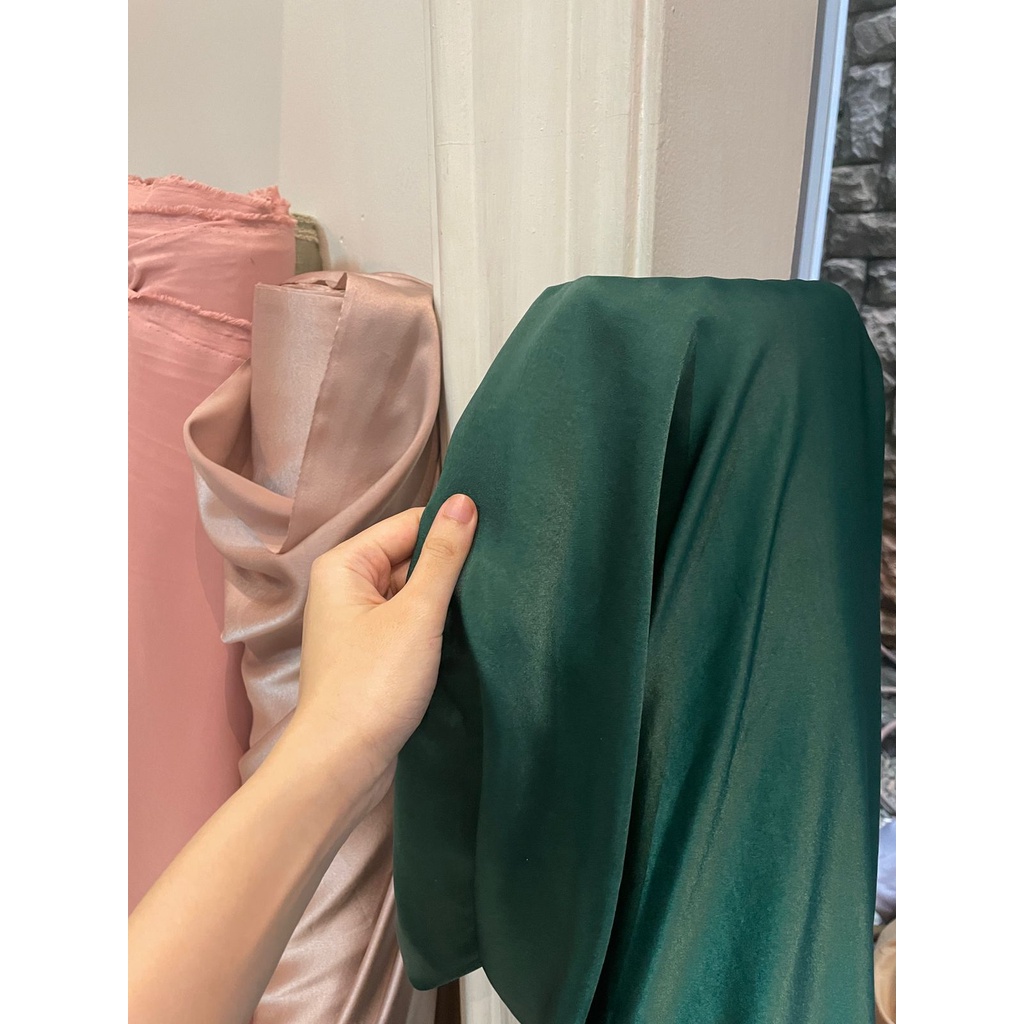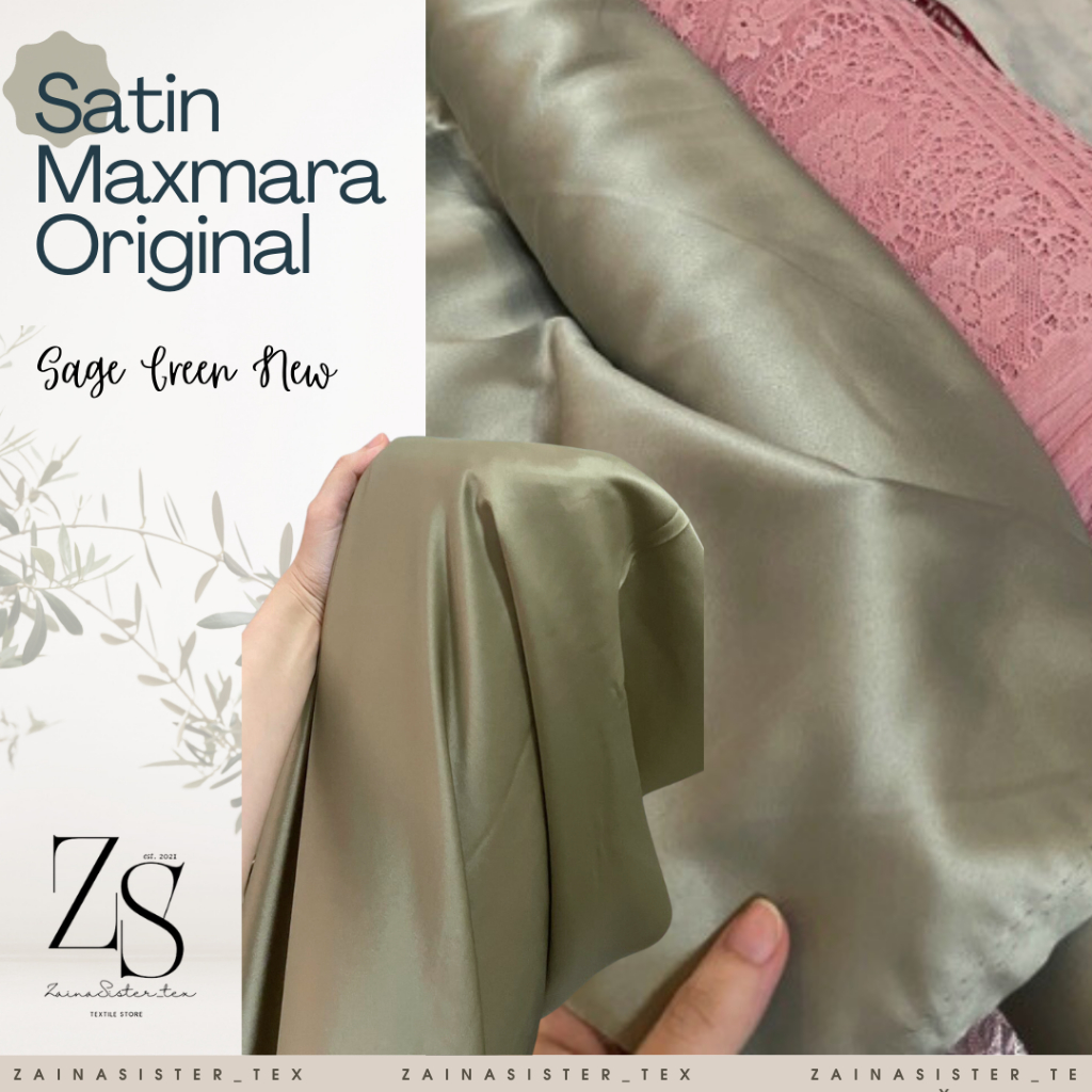BAHAN SATIN MAXMARAA SILK LUX PREMIUM METERAN MEWAH WARNA SAGE GREEN HIJAU ARMY