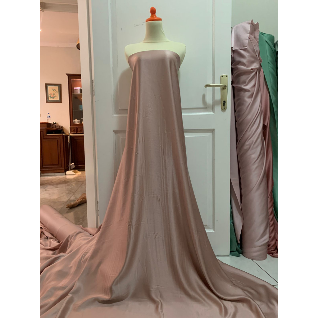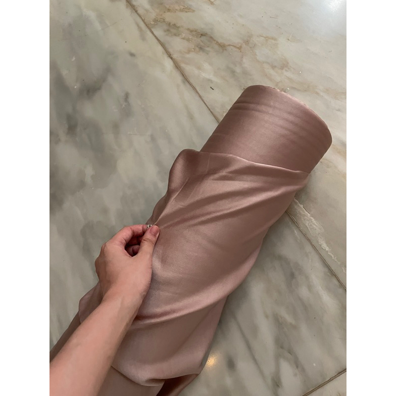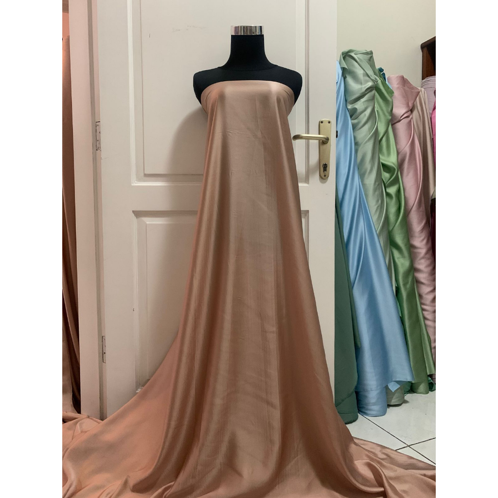 BAHAN SATIN MAXMARAA SILK LUX PREMIUM METERAN MEWAH WARNA COKELAT MILO BROWN
