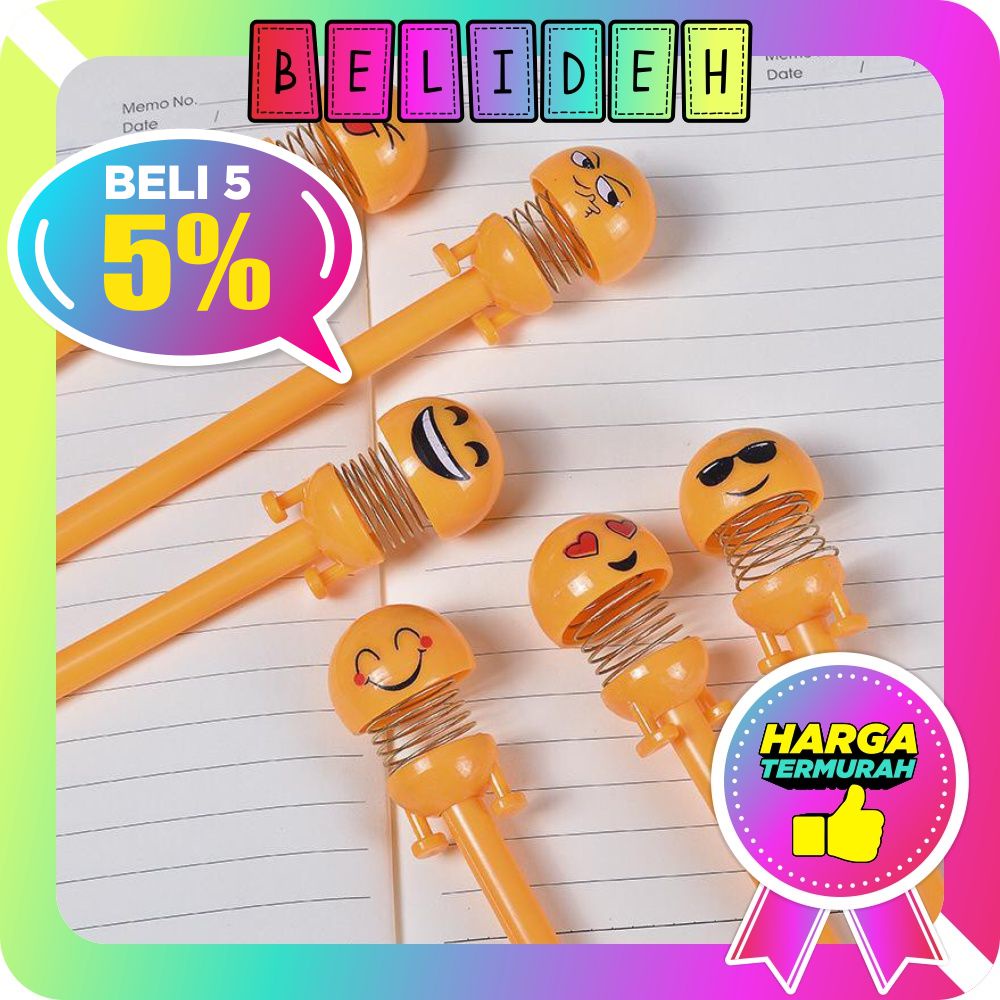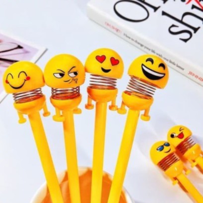 PENA EMOJI SPRING PULPEN PEN KARAKTER EMOTICON SOUVENIR EMOT GOYANG UNIK LUCU