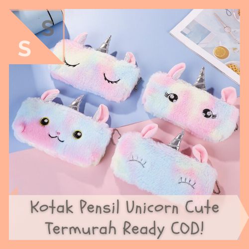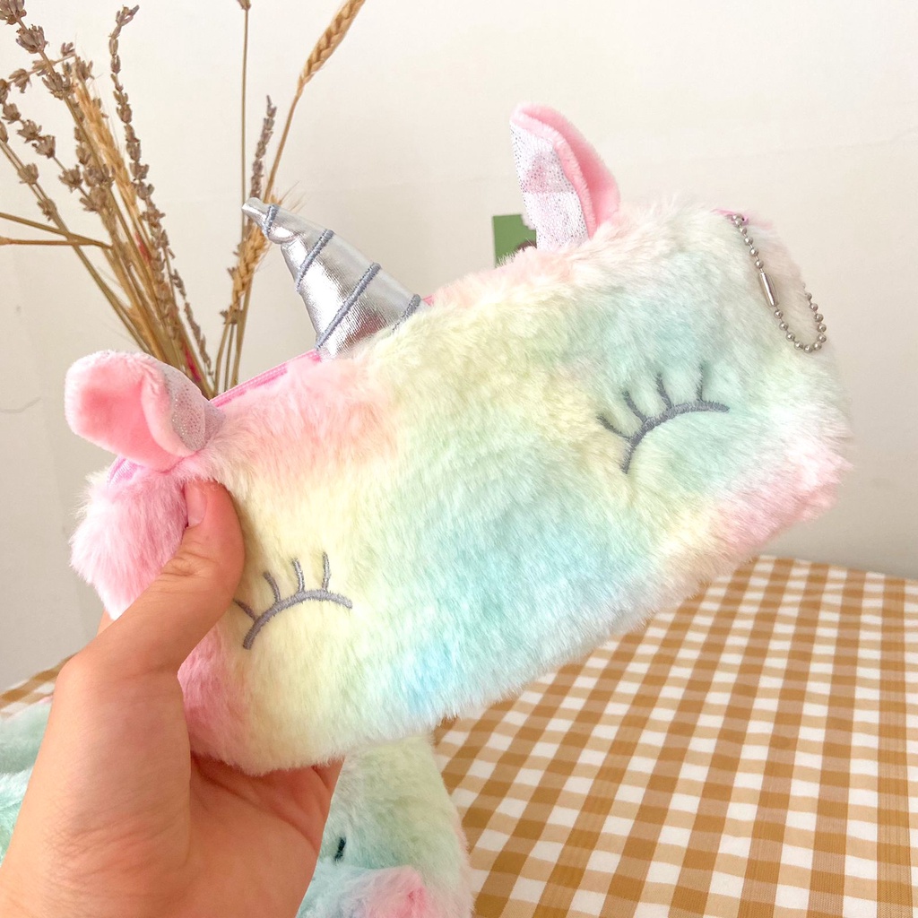 [SIMPLYSHOP] KOTAK TEMPAT PENSIL KAIN BULU BELUDRU HALUS / SOFT PLUSH PLUSHIE PENCIL CASE UNICORN RAINBOW