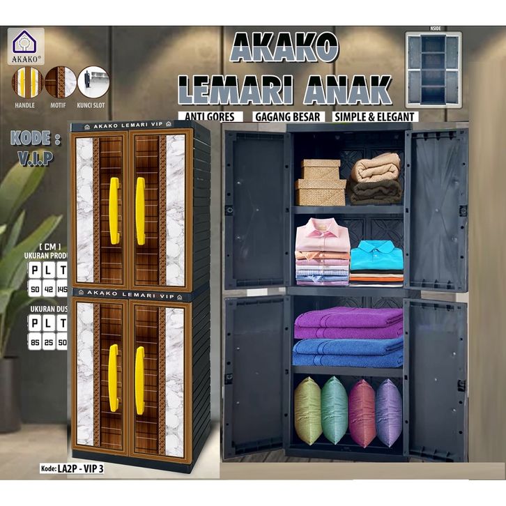 LEMARI JUMBO PLASTIK AKAKO 3 4 5 SUSUN PINTU LP2p VIP TWIN PAKAIAN BAJU RAK KUNCI KACA CERMIN BERKUALITAS 2024