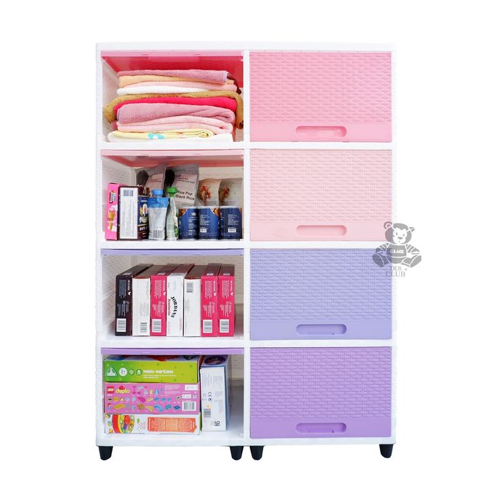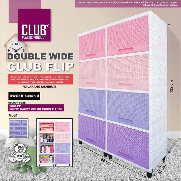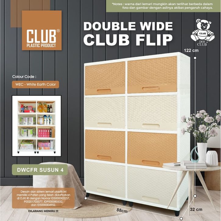 LEMARI PLASTIK CLUB FLIP DOUBLE WIDE 4 SUSUN JUMBO 8 PINTU BUFFET TV PINTU GESER RAK BAJU PAKAIAN MINIMALIS SERBAGUNA