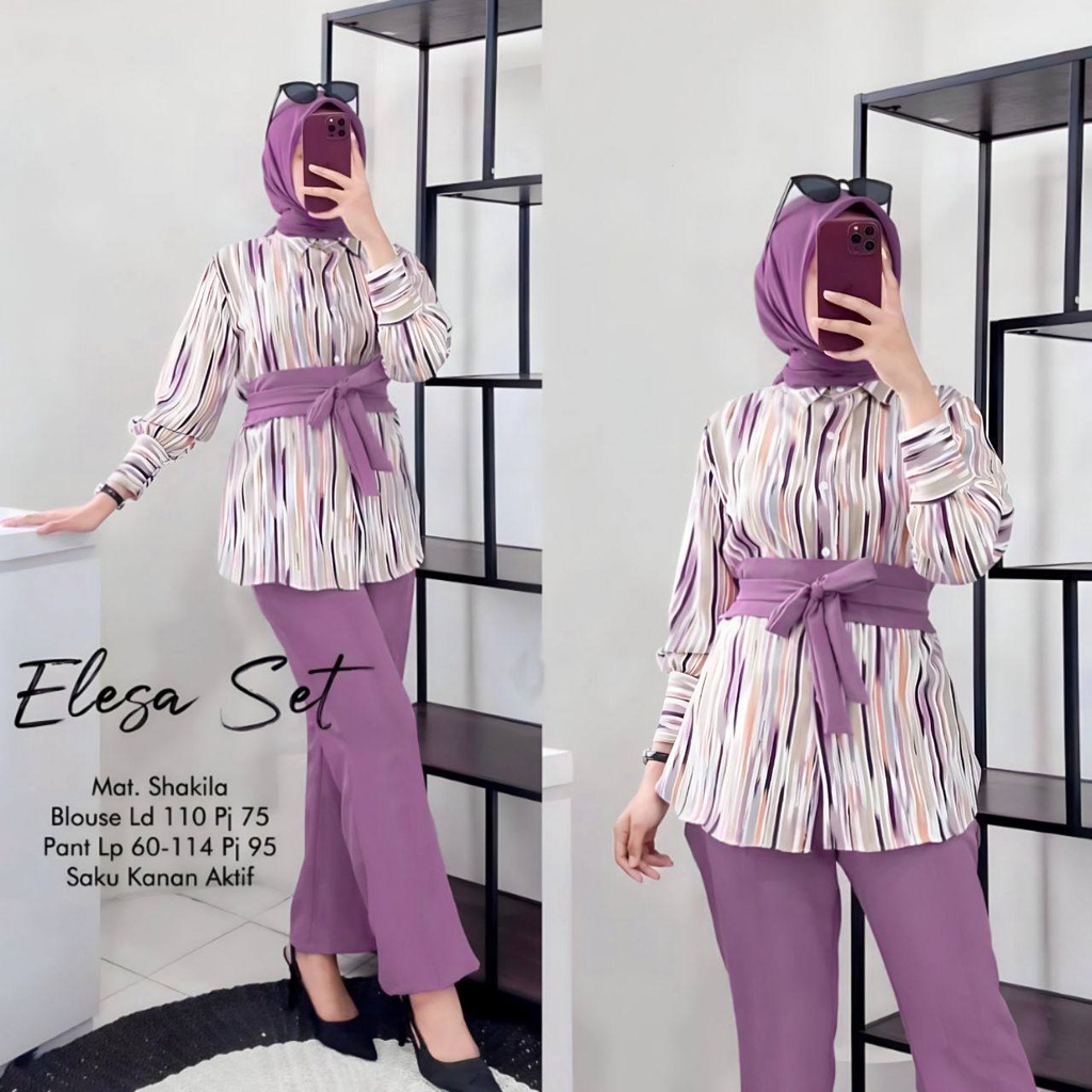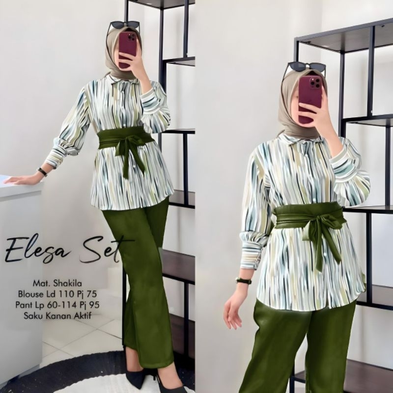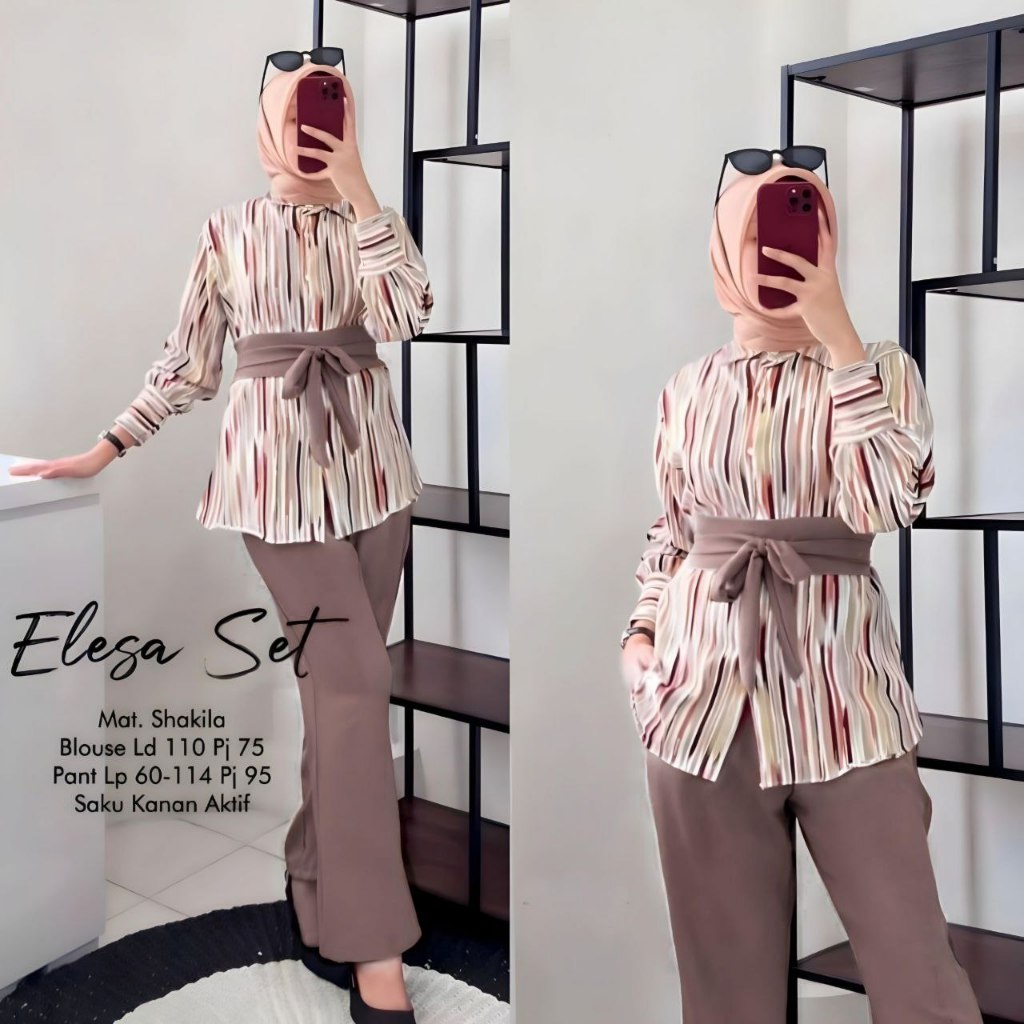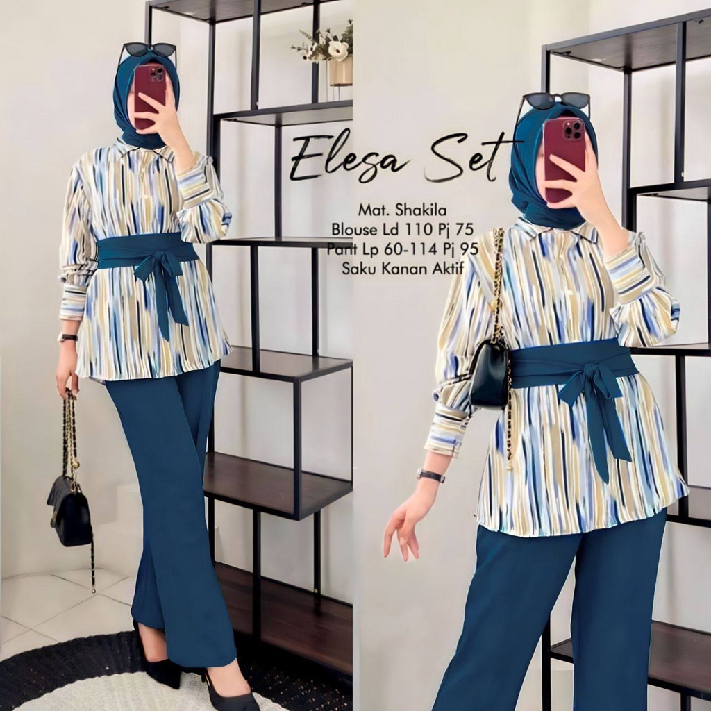 ELESA SET - ONE SET SHAKILA TWILL PREMIUM SETELAN WANITA LENGAN 7/8 SET BAJU CELANA KEKINIAN LD 110 CM