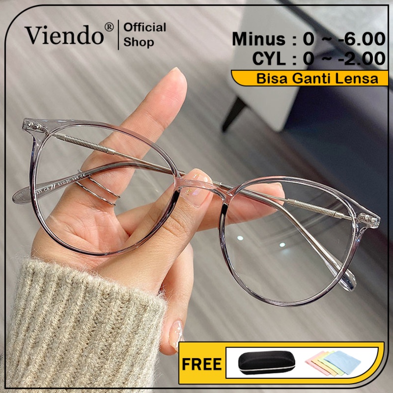 VIENDO KACAMATA MINUS ANTI RADIASI PHOTOCROMIC BLUECROMIC WANITA PRIA COWOK TERBARU KOREA STYLE FRAME 2 IN 1