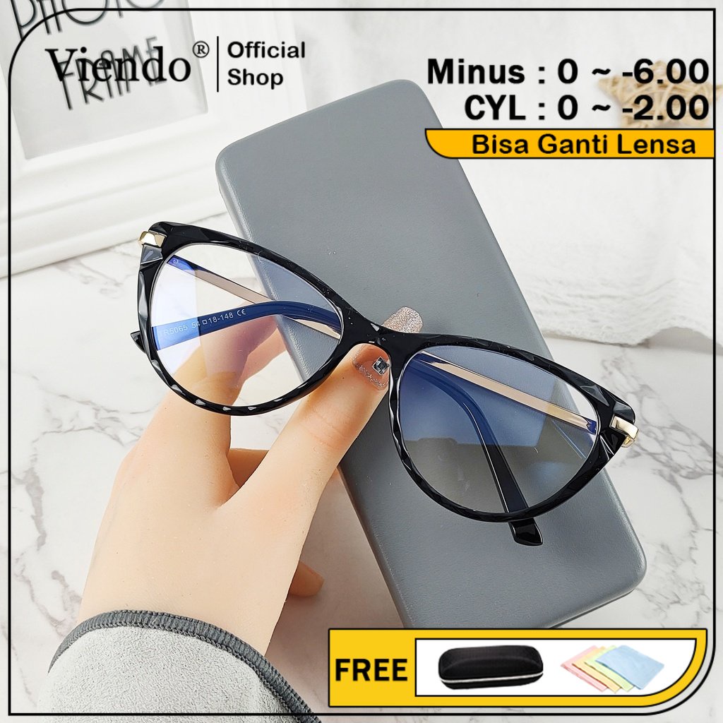 VIENDO KACAMATA PHOTOCROMIC MINUS ANTI RADIASI BLUERAY WANITA FRAME 2 IN 1 BLUECROMIC POTOCROMIC