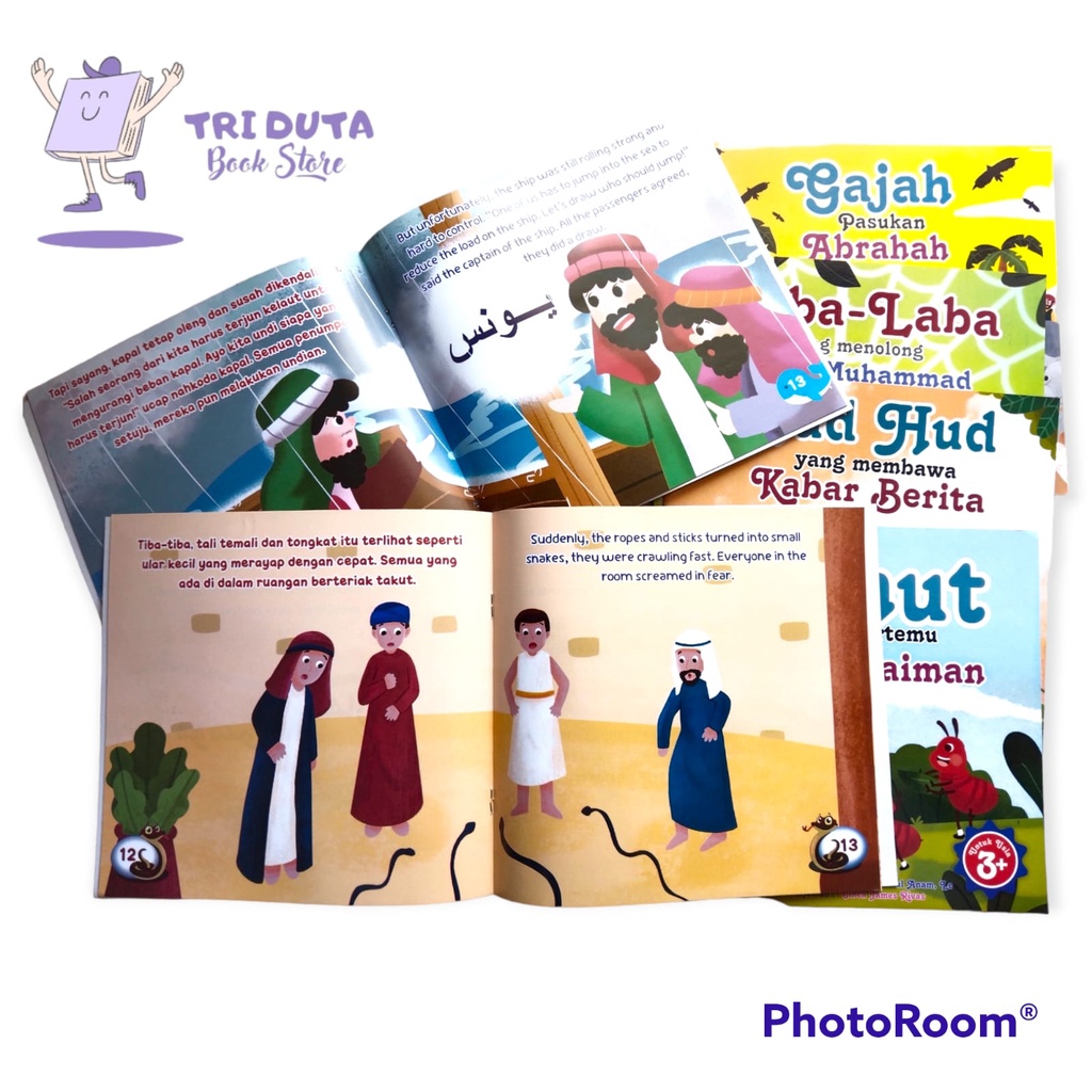 PAKET ISI 6 BUKU CERITA BACAAN ANAK MUSLIM SERI MUKJIZAT NABI DENGAN HEWAN FULL COLOR 2 BAHASA