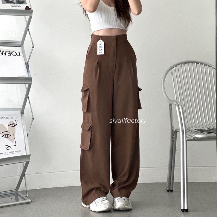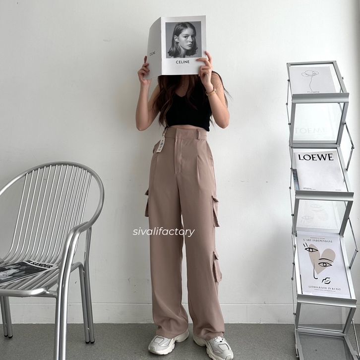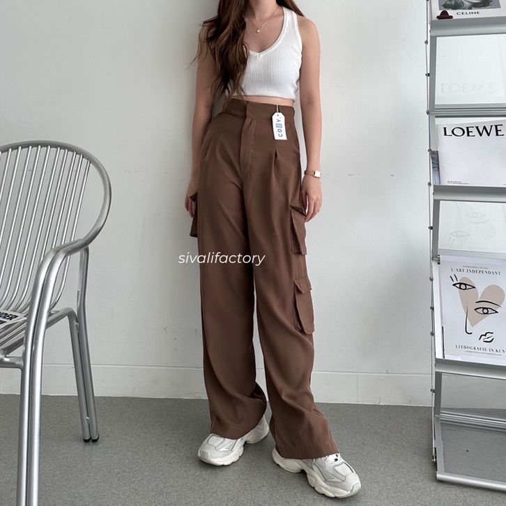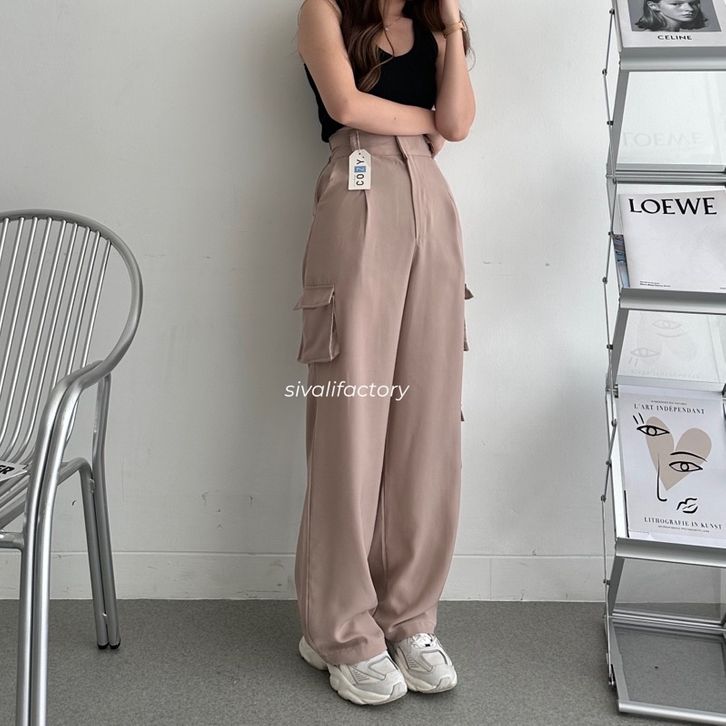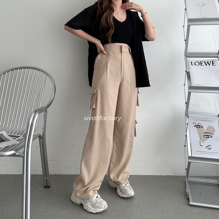 SIVALI FACTORY BONNIE CARGO PANTS - HIGHWAIST LOOSE CARGO PETITE - CELANA KARGO - BAGGY - PANJANG - WANITA - TERBARU