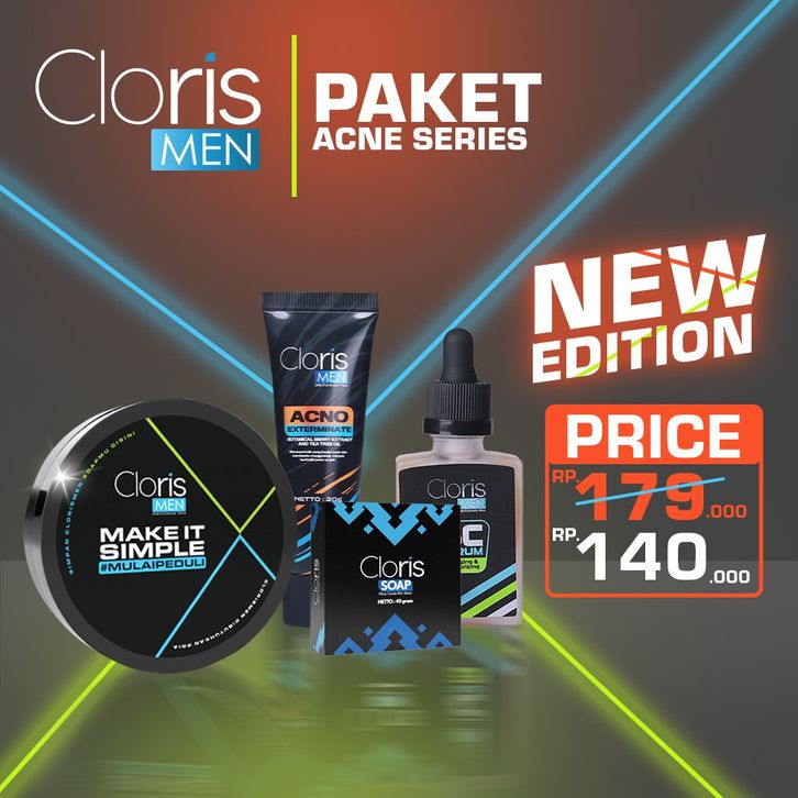PAKET CLORISMEN SKINCARE BRIGHTENING ACNO CLORIS MEN PERAWATAN WAJAH PRIA SERUM MENCERAHKAN ACNE GEL