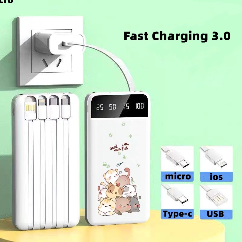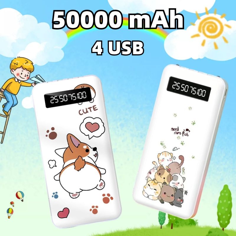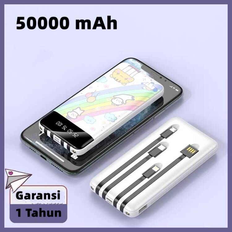 LENTIVEN POWERBANK 50000MAH 4 KABEL CUTE LED PORTABLE FAST CHARGER
