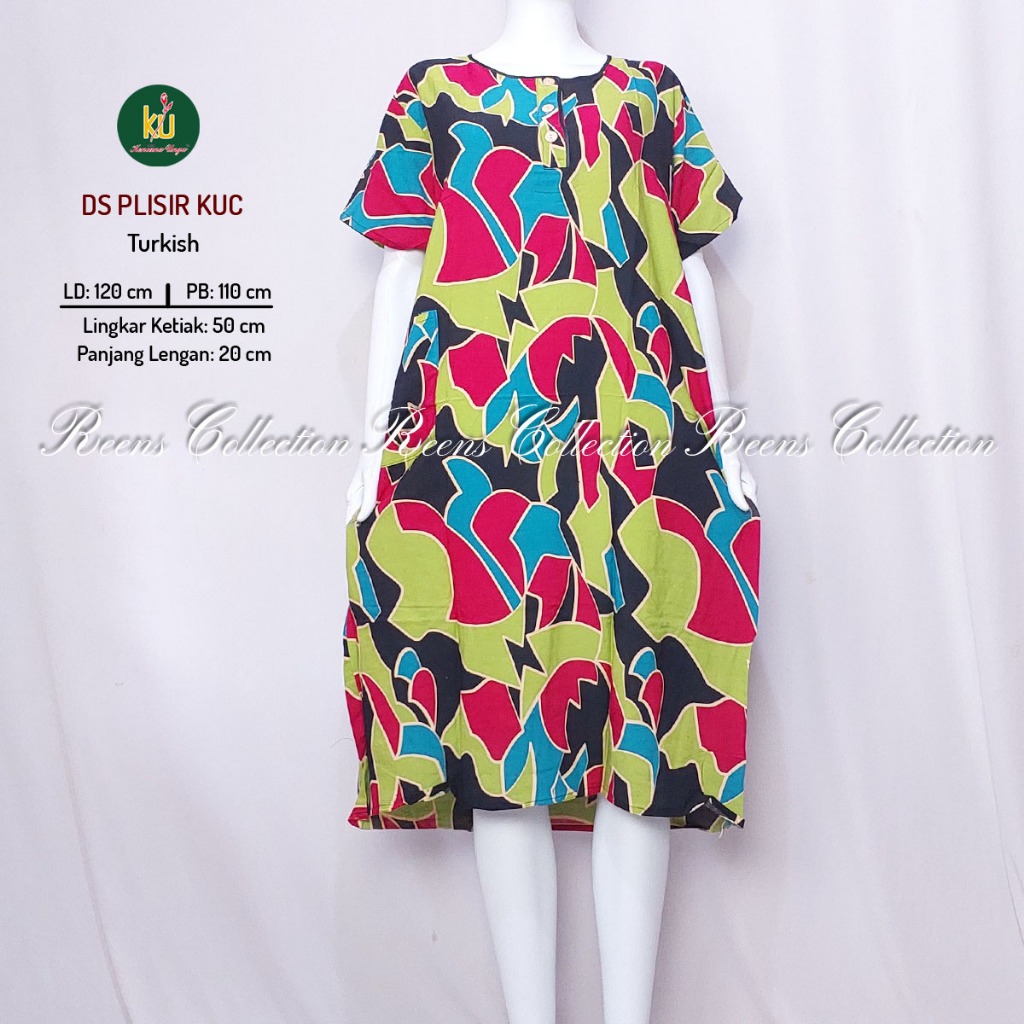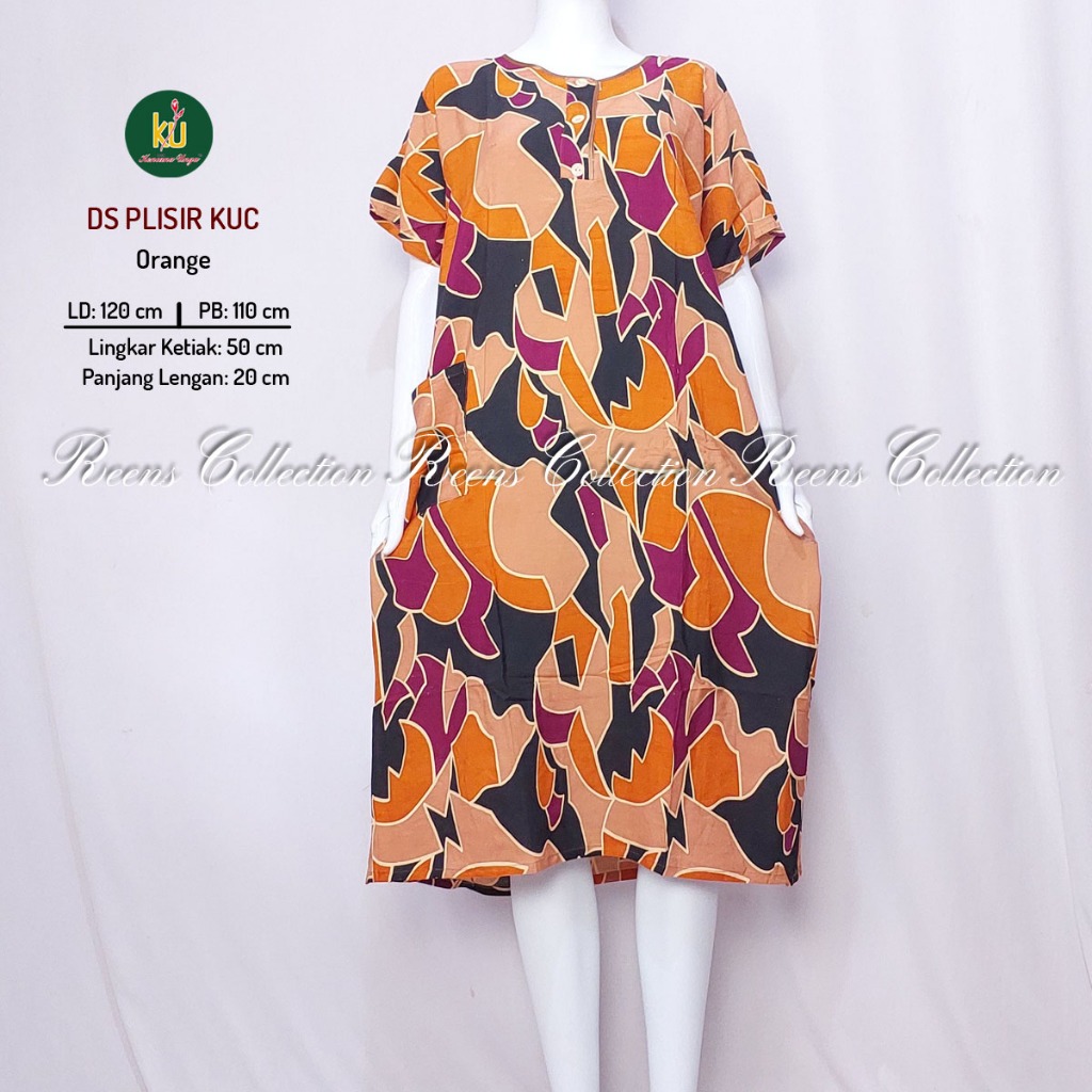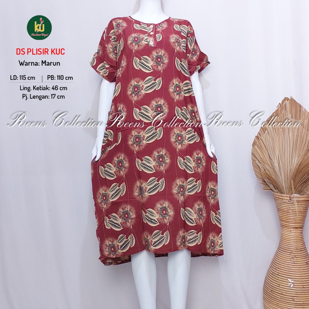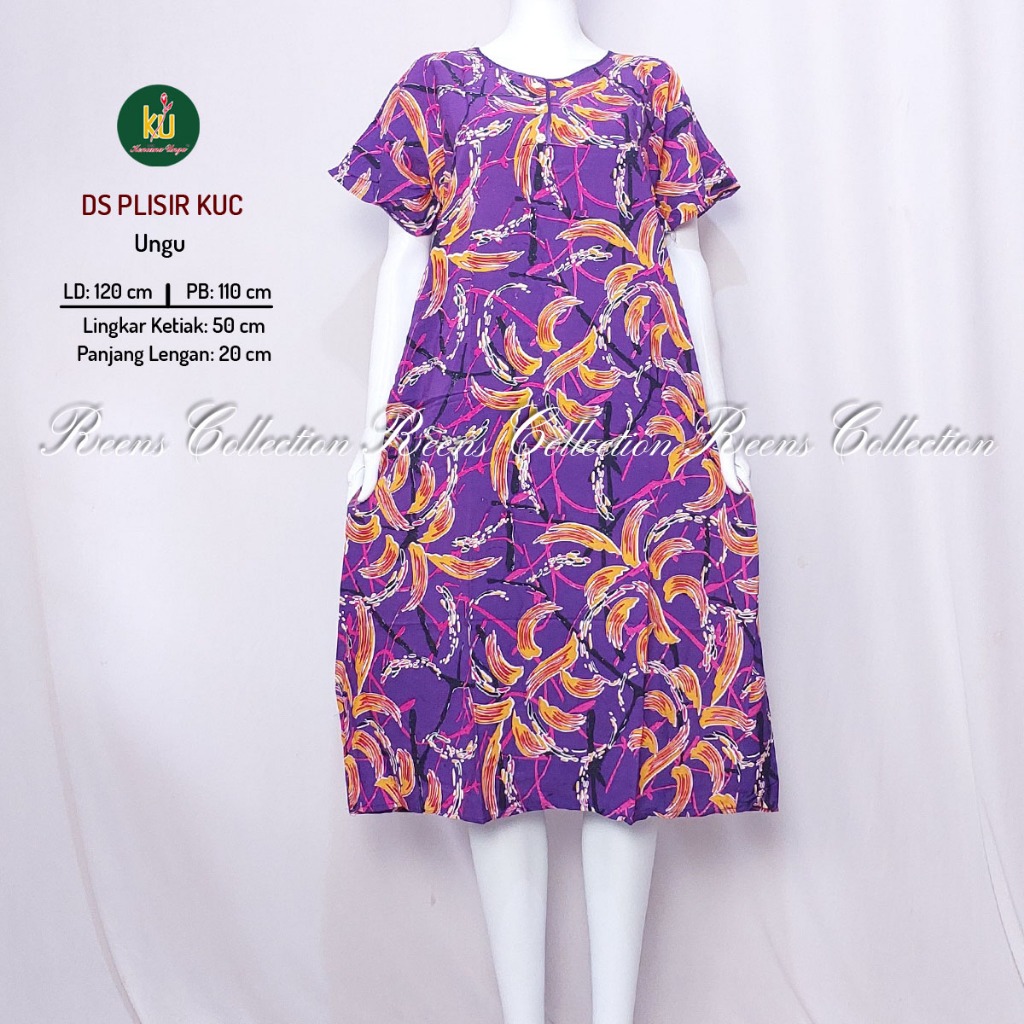KENCANA UNGU DASTER PLISIR KUC LABEL COKELAT | BATIK PRINT DASTER LENGAN PENDEK DI BAWAH LUTUT 3 KANCING DEPAN