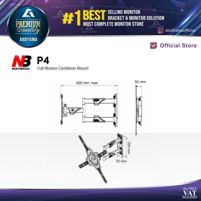 Bracket TV Monitor LED LCD North Bayou NB P4 NBP4 32"-55" Tilt Swivel