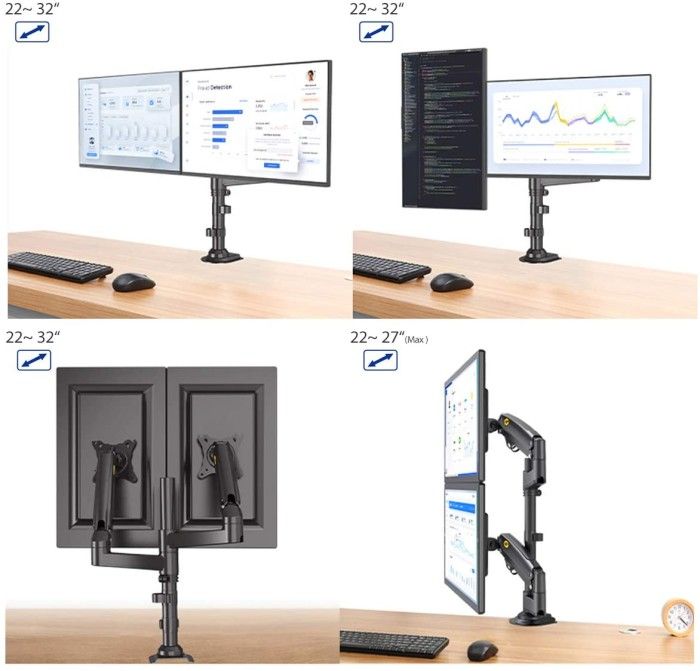 Bracket Dual Monitor NB H180 22" - 32" Gas Spring Swivel Rotate