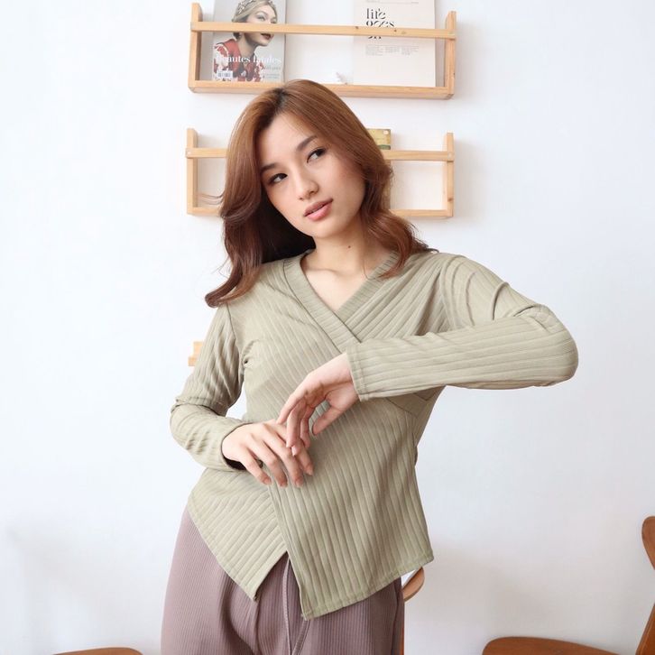 MSMO CECIL KNIT BODYCON VNECK TOP ATAU ATASAN WANITA
