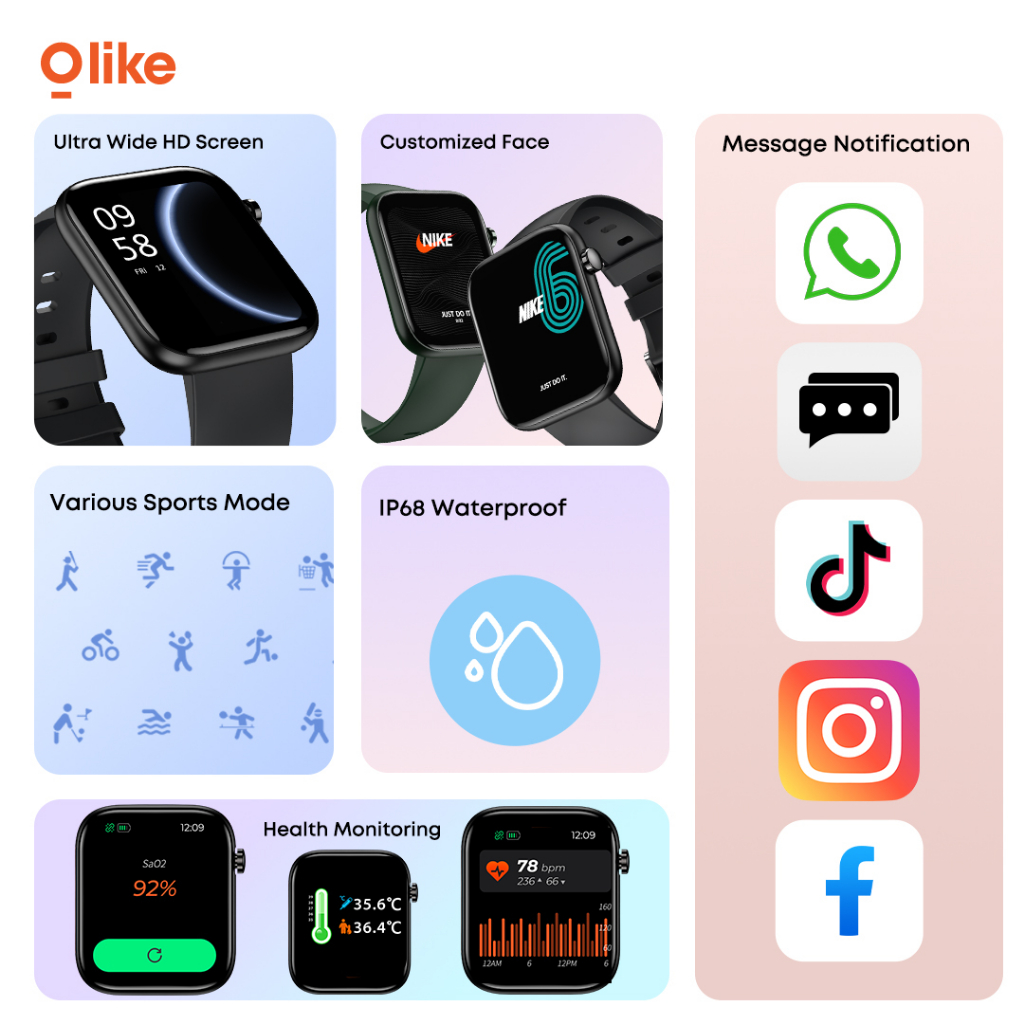 OLIKE SMARTWATCH TOUCH SCREEN IP67 WATERPROOF SPORT HEALTH TRACKER W12
