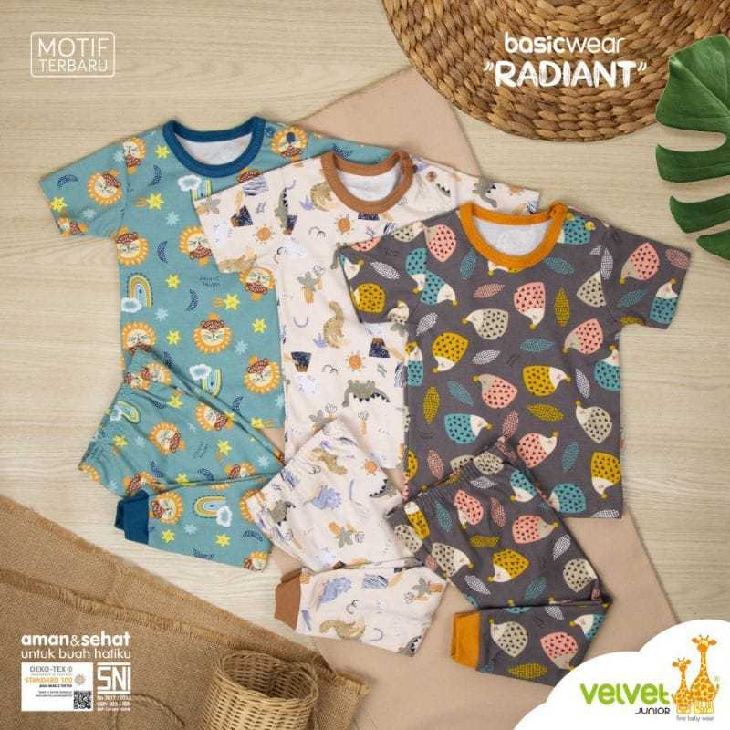 VELVET JUNIOR PIYAMA 3 SETELAN PENDEK PANJANG 3-6 BLN VELVET PIYAMA BAYI / PAKAIAN BAYI BAJU BAYI KADO BAYI