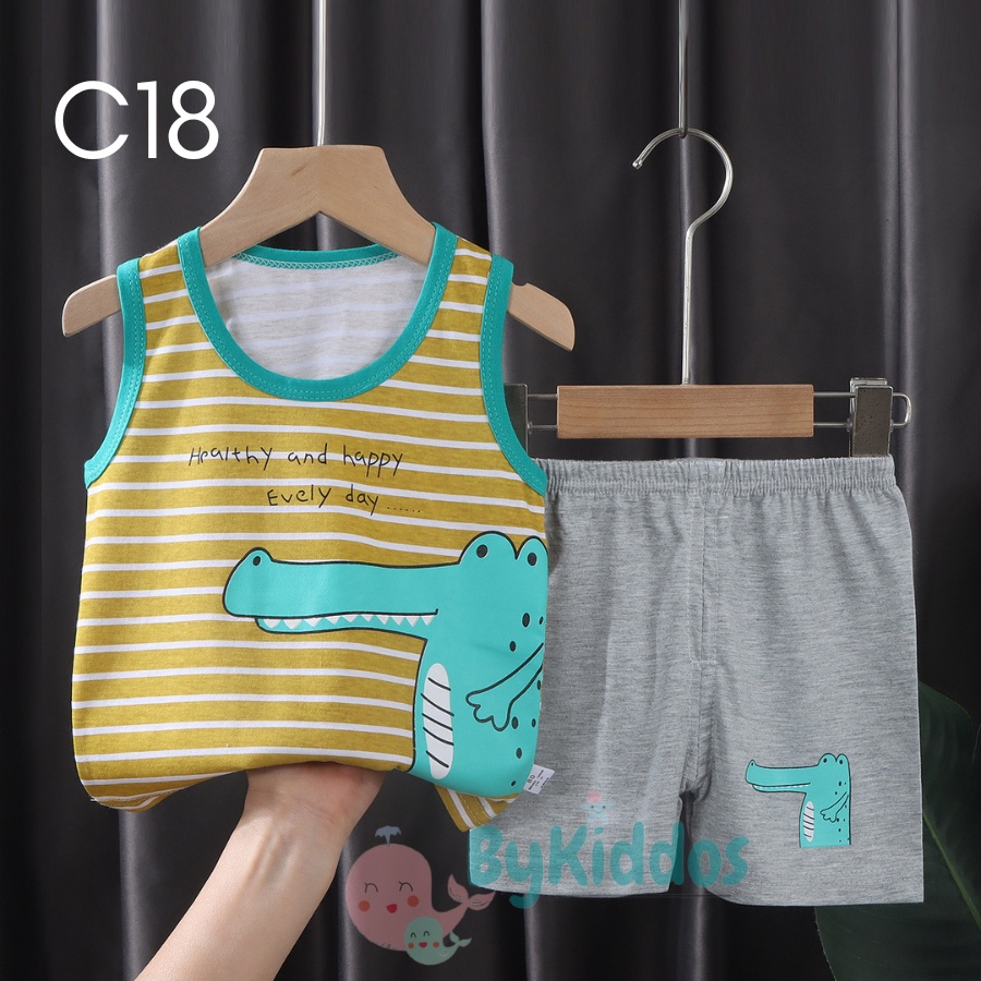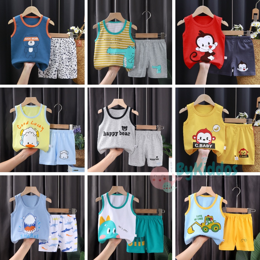 BYKIDDOS - SETELAN ANAK KAOS ANAK KUTUNG TANPA LENGAN LUCU / SETELAN BAYI TANPA LENGAN / SETELAN BAYI TANPA LENGAN