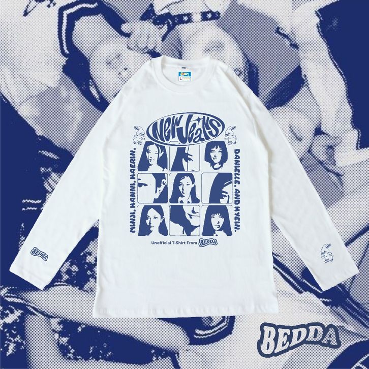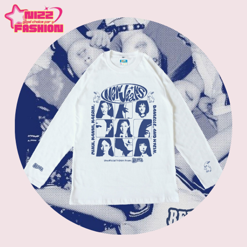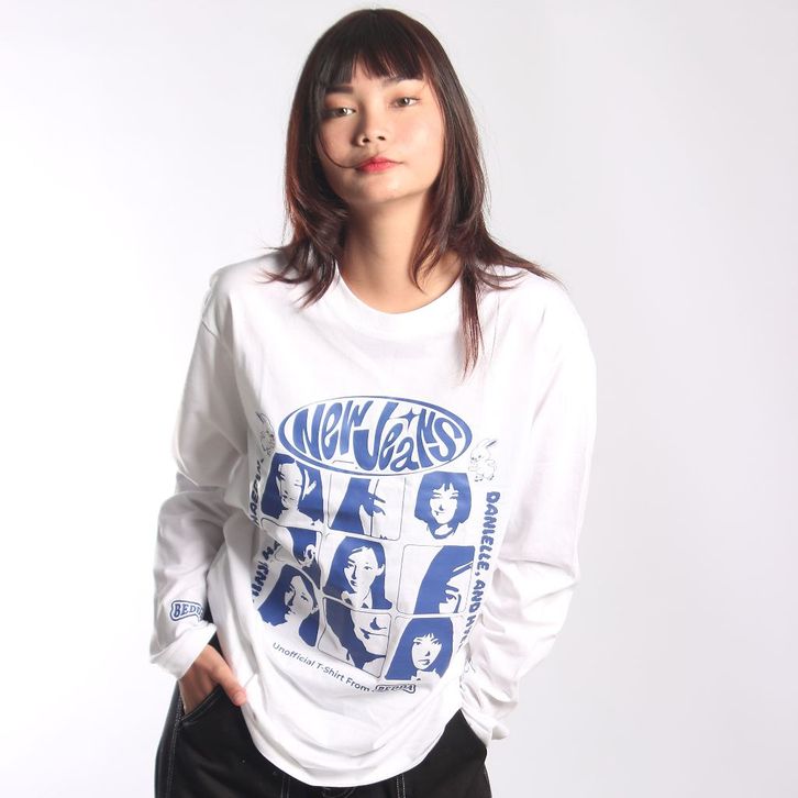 KAOS OVERSIZE WANITA LENGAN PANJANG T-SHIRT NEW JEANS MEMBER UNOFFICIAL LONG SLEEVE WHITE COMBED TERLARIS
