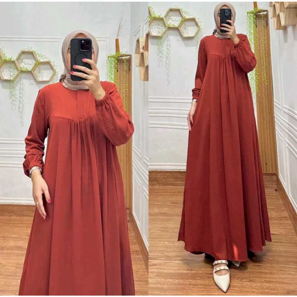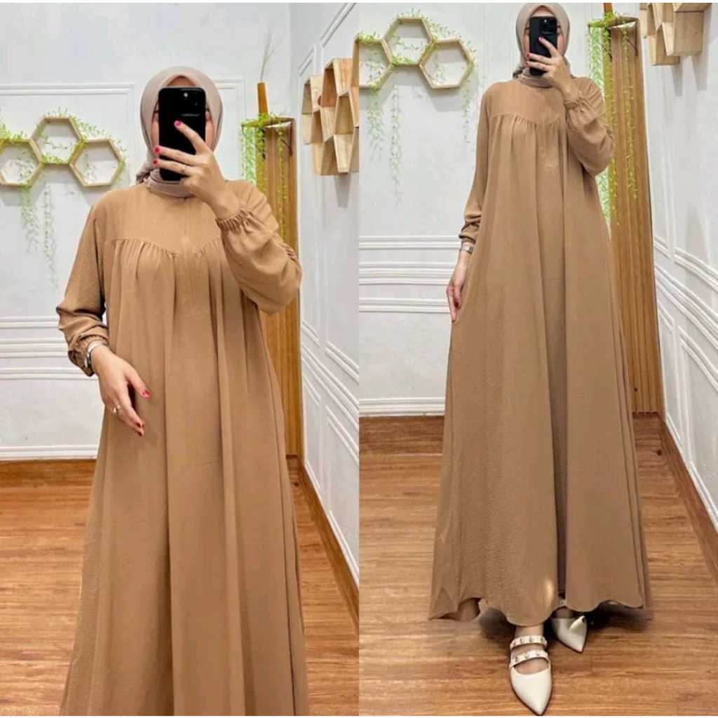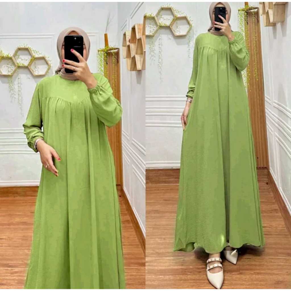 DRESS MARYAM BUSUI CRINKLE AIRFLOW PREMIUM / LD 110 PB 140 / RESLETING DEPAN /LENGAN KERUT